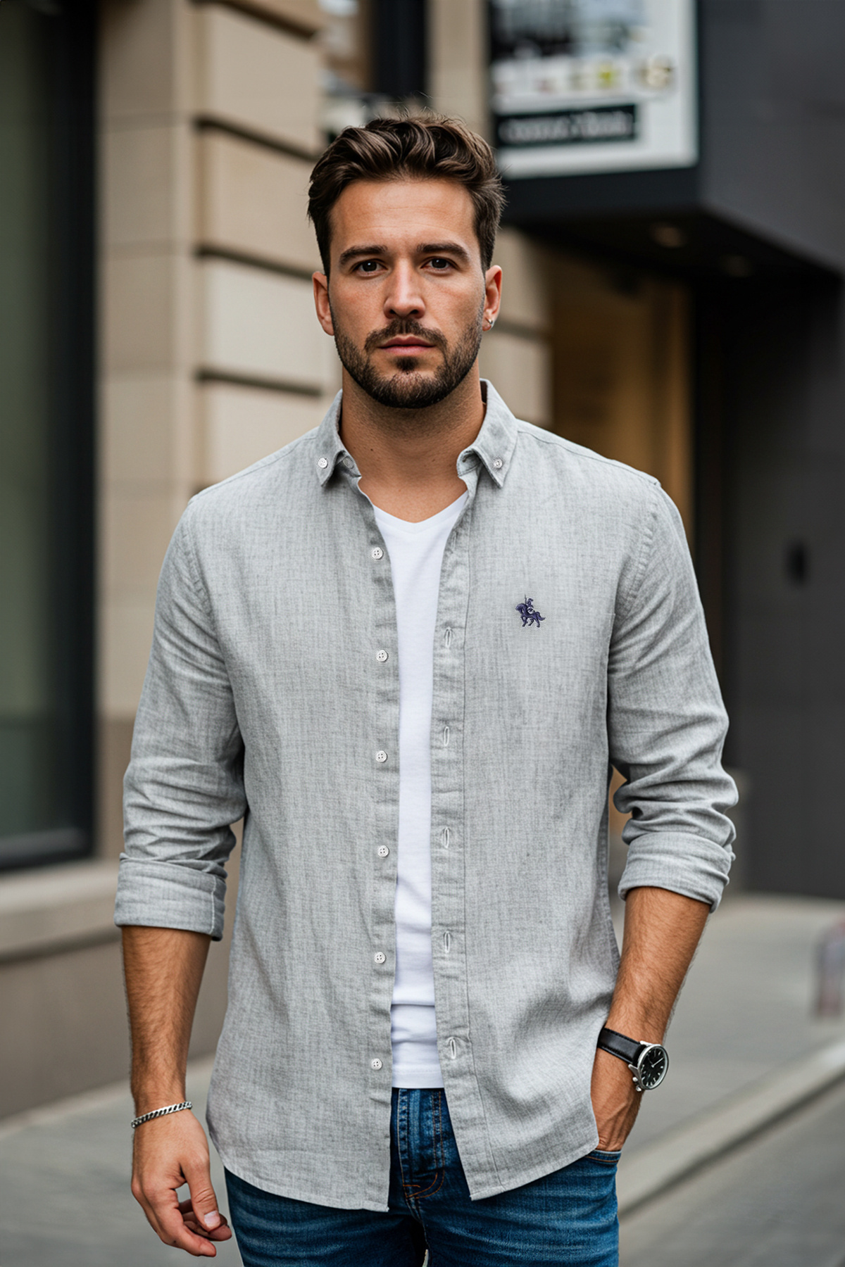 پیراهن مردانه بیسیک طوسی روشن Trendyolmilla Man