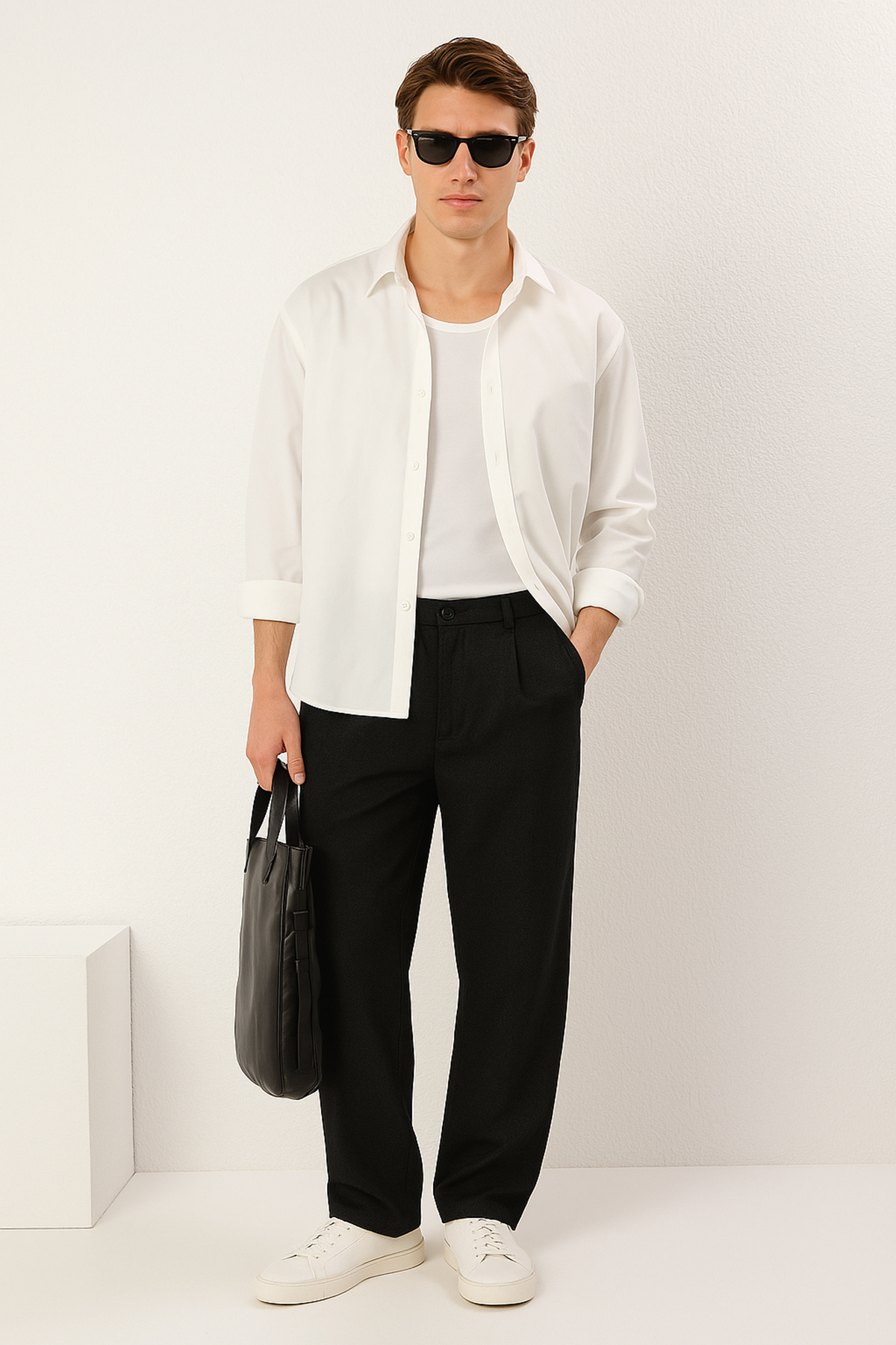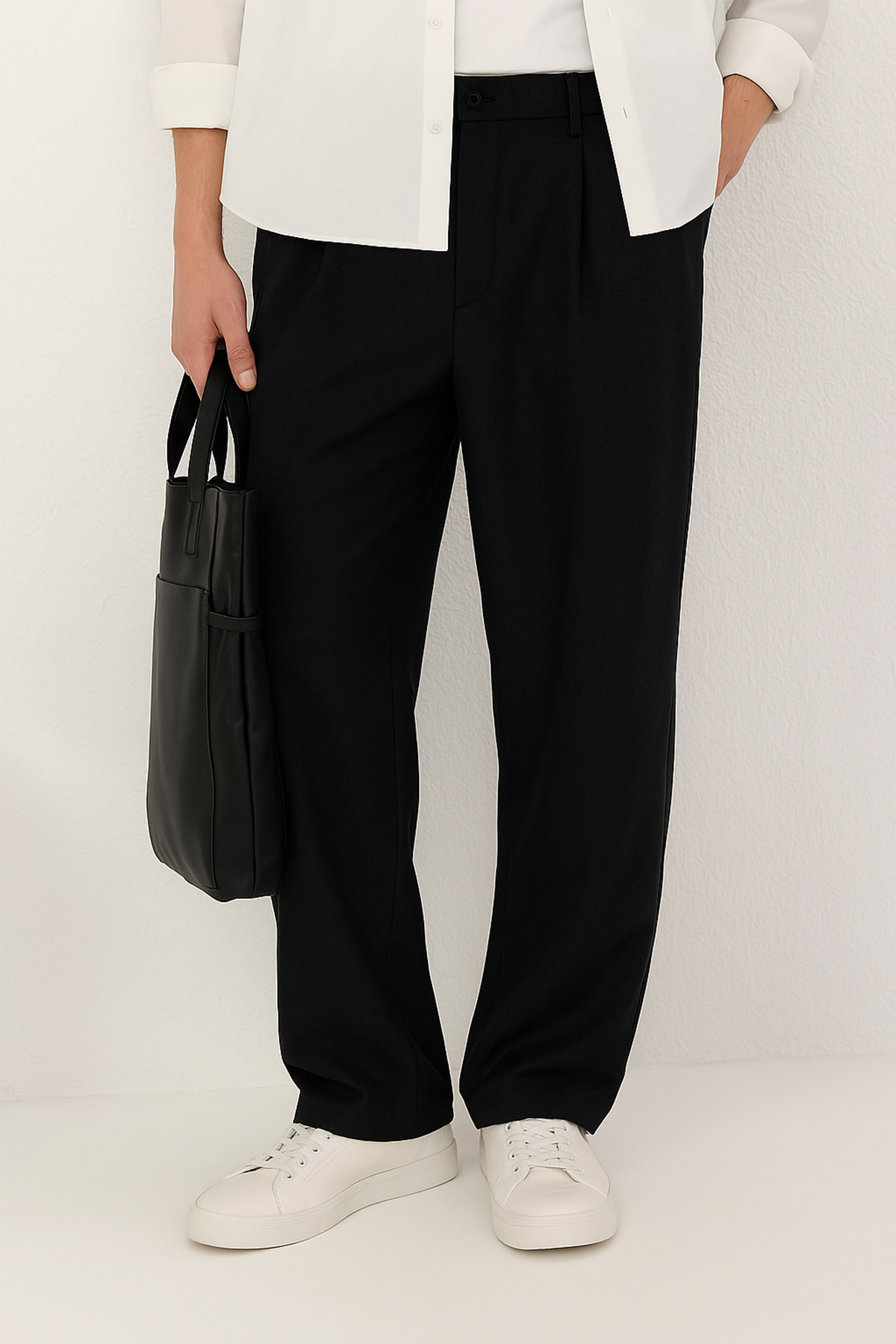 شلوار مردانه راحتی دمپا گشاد مشکی گاباردین 100% پنبه trendyolmilla