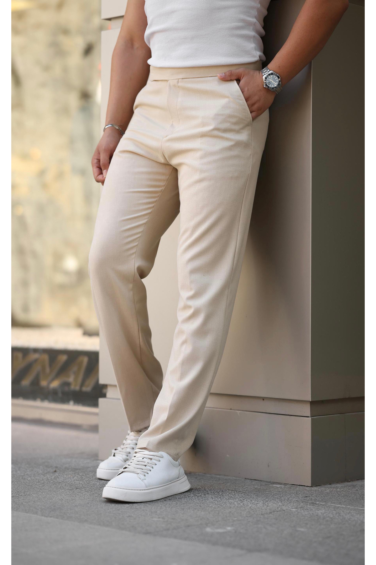 شلوار پارچهای برش ایتالیایی جدید مردانه کرم Trendyolmilla
