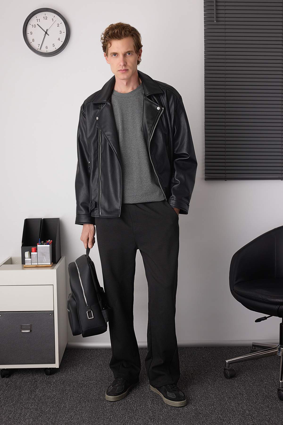 شلوار مردانه دو لبه کشسان راحت و انعطافپذیر بافتنی مشکی Trendyolmilla