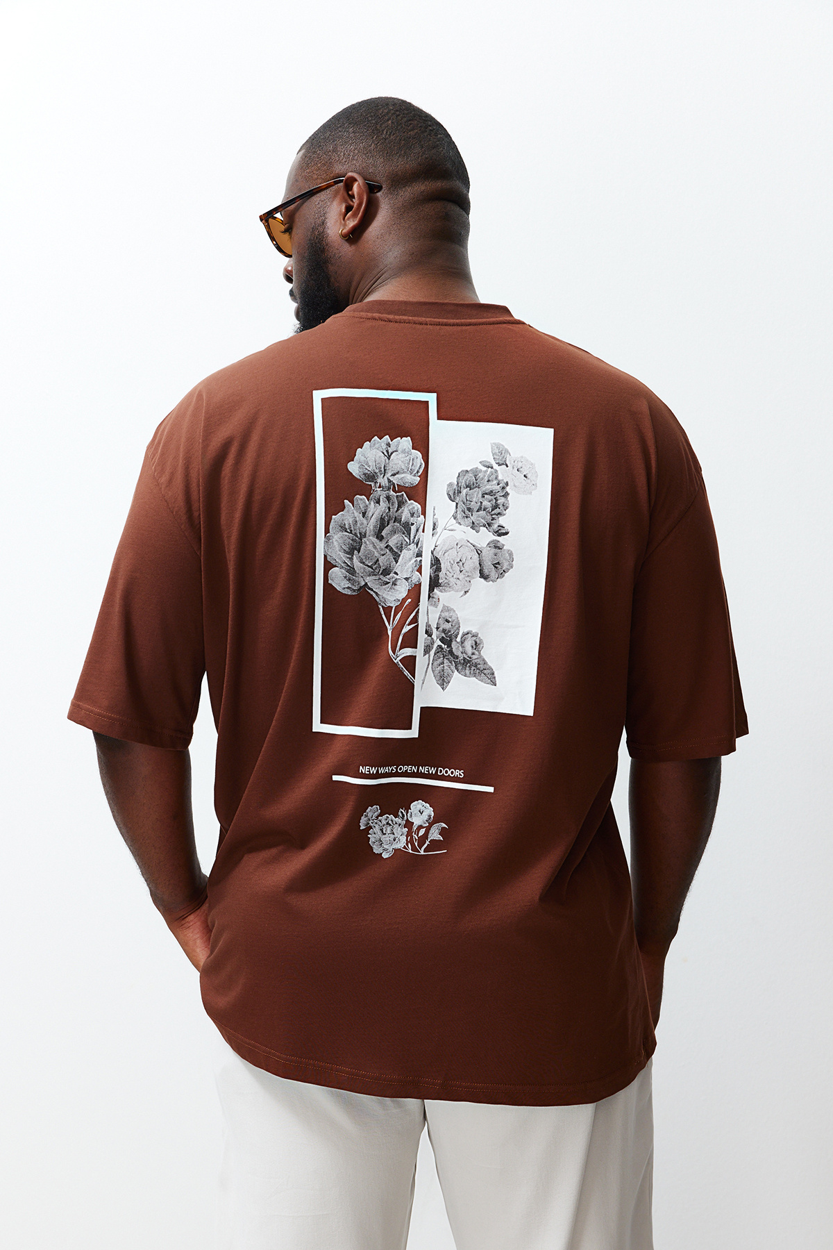 صفحه اصلی\همه تیشرت ها\تیشرت مردانه آستین کوتاه چاپ شده با سایز بزرگ قهوه ای TRENDYOL MAN
