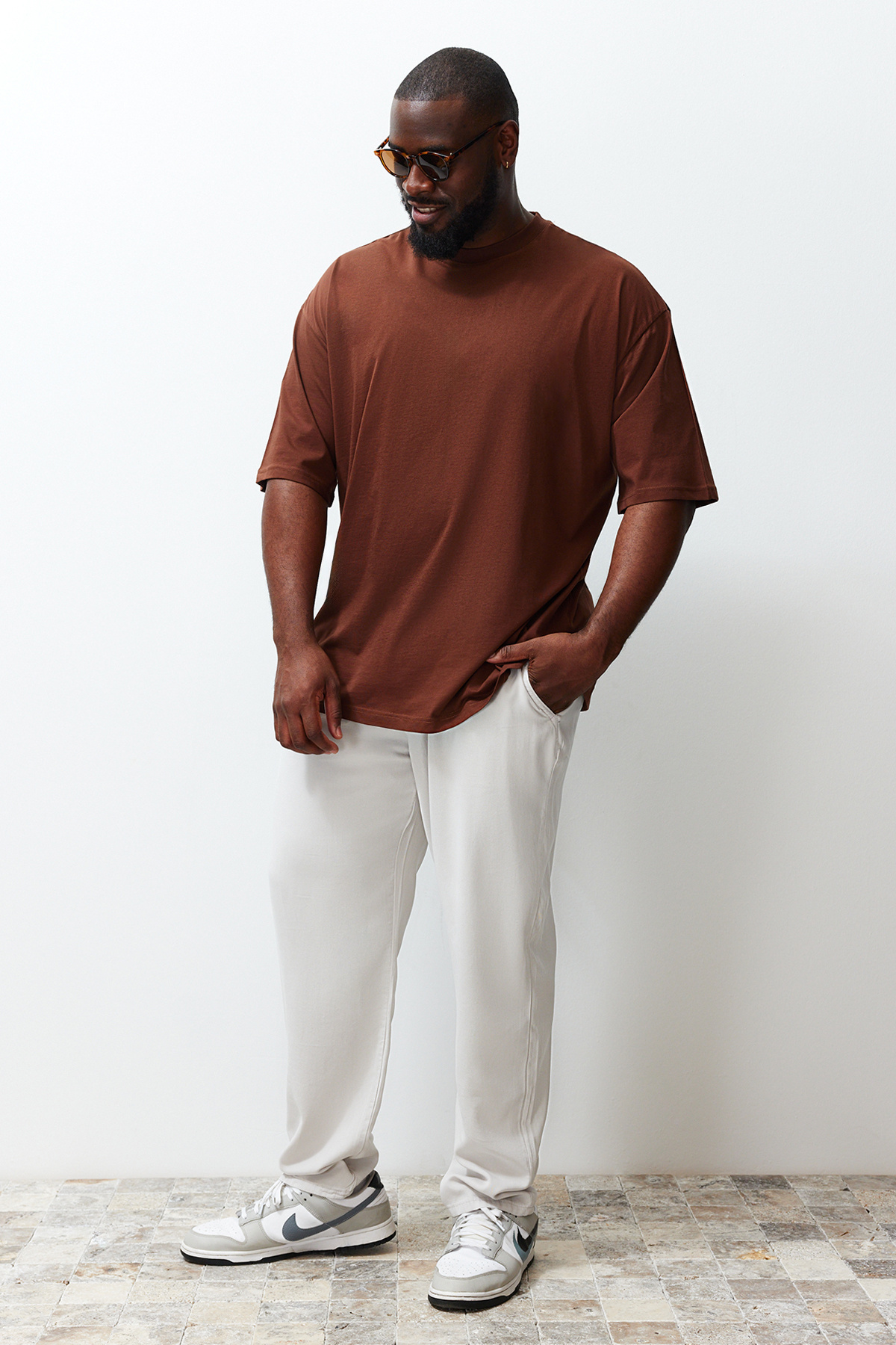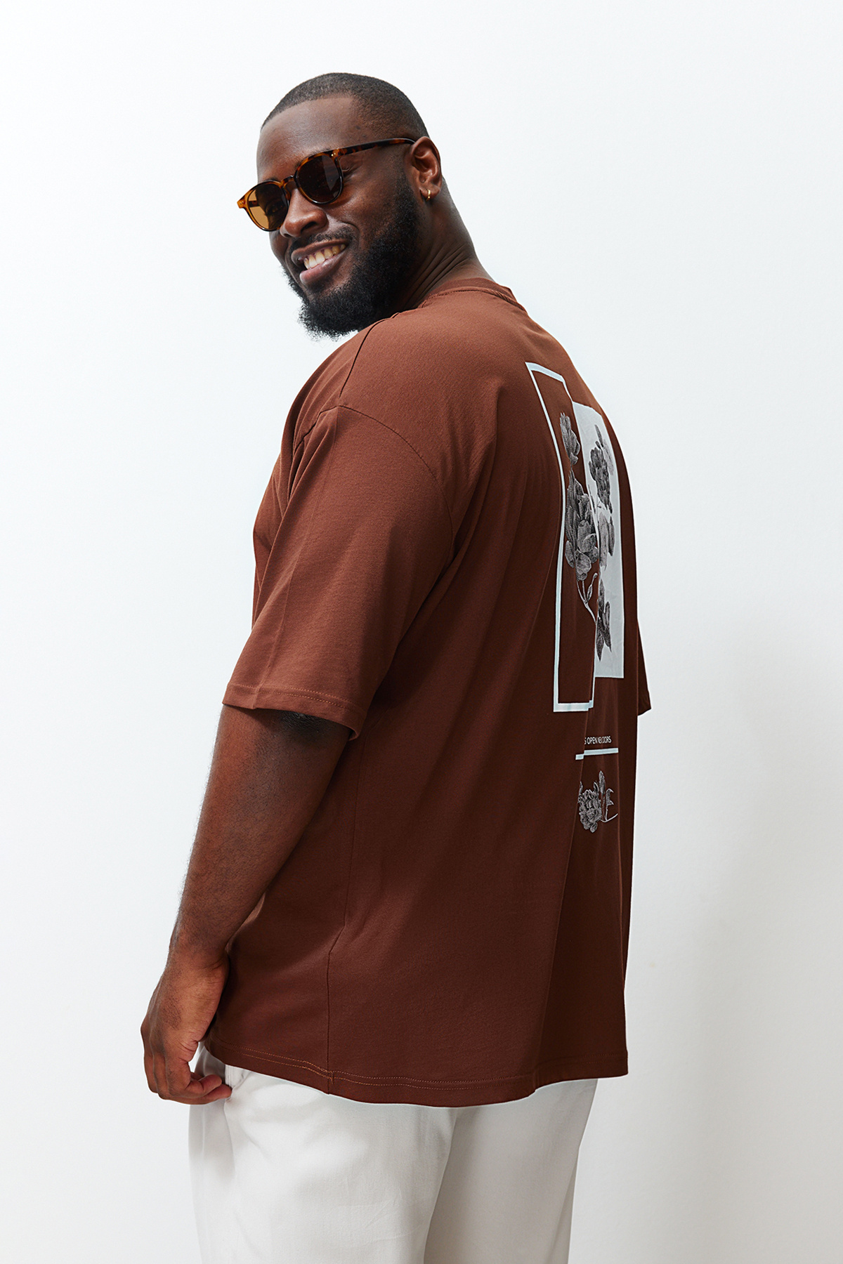 تیشرت مردانه آستین کوتاه چاپ شده با سایز بزرگ قهوه ای TRENDYOL MAN