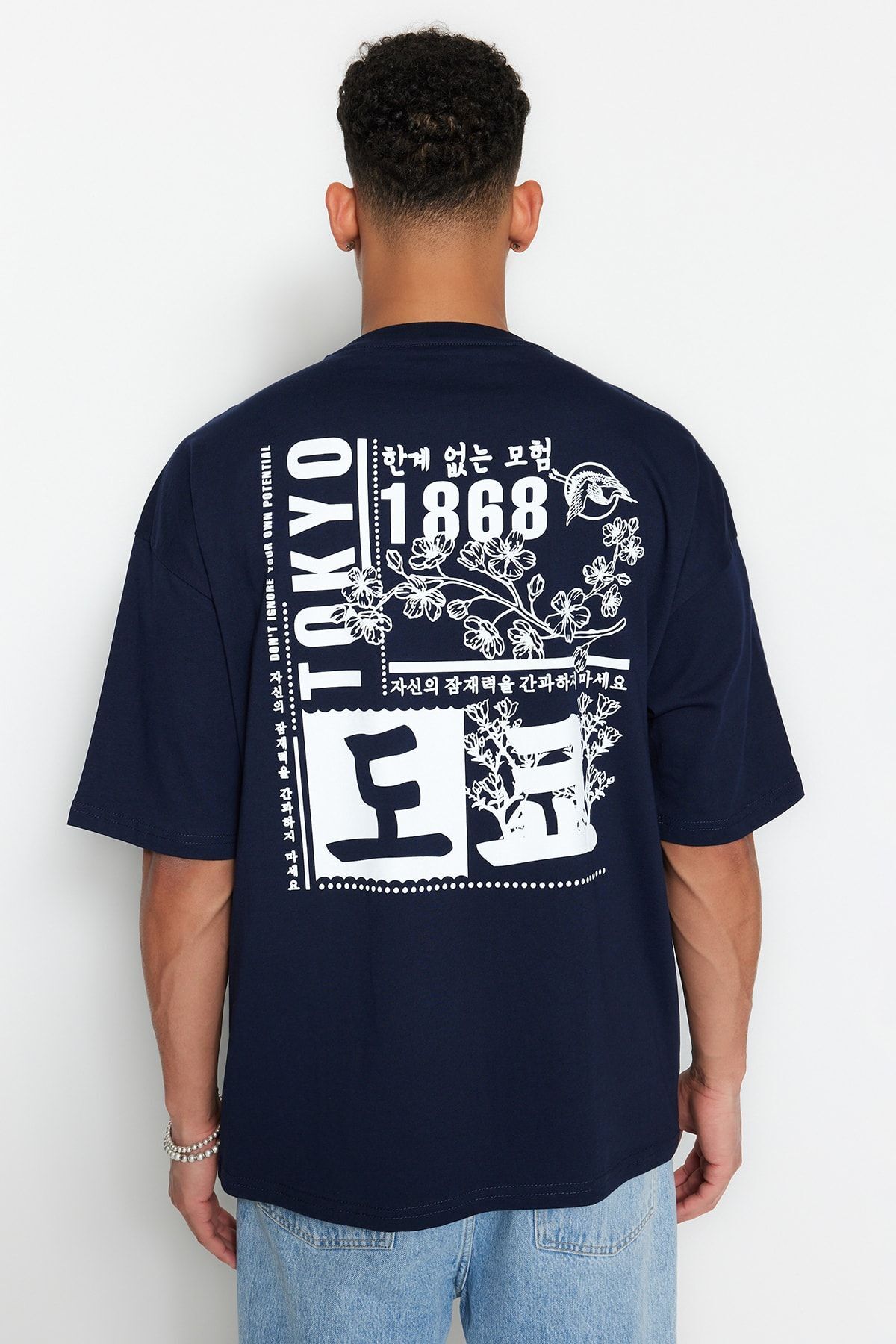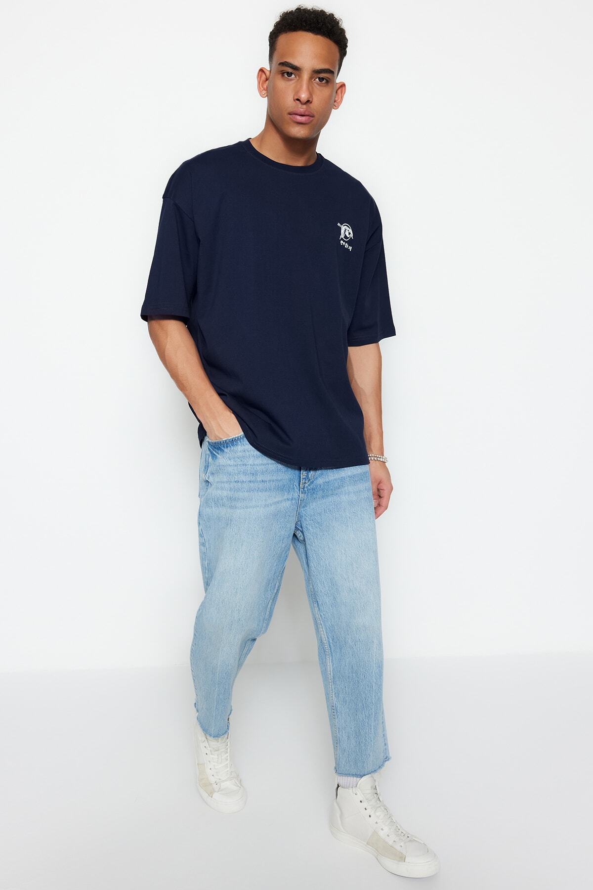 تیشرت مردانه 100% پنبه ای سایز بزرگ سرمه ای اورسایز TRENDYOL MAN