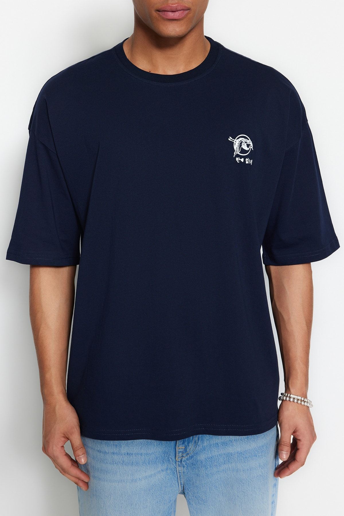 صفحه اصلی\همه تیشرت ها\تیشرت مردانه 100% پنبه ای سایز بزرگ سرمه ای اورسایز TRENDYOL MAN