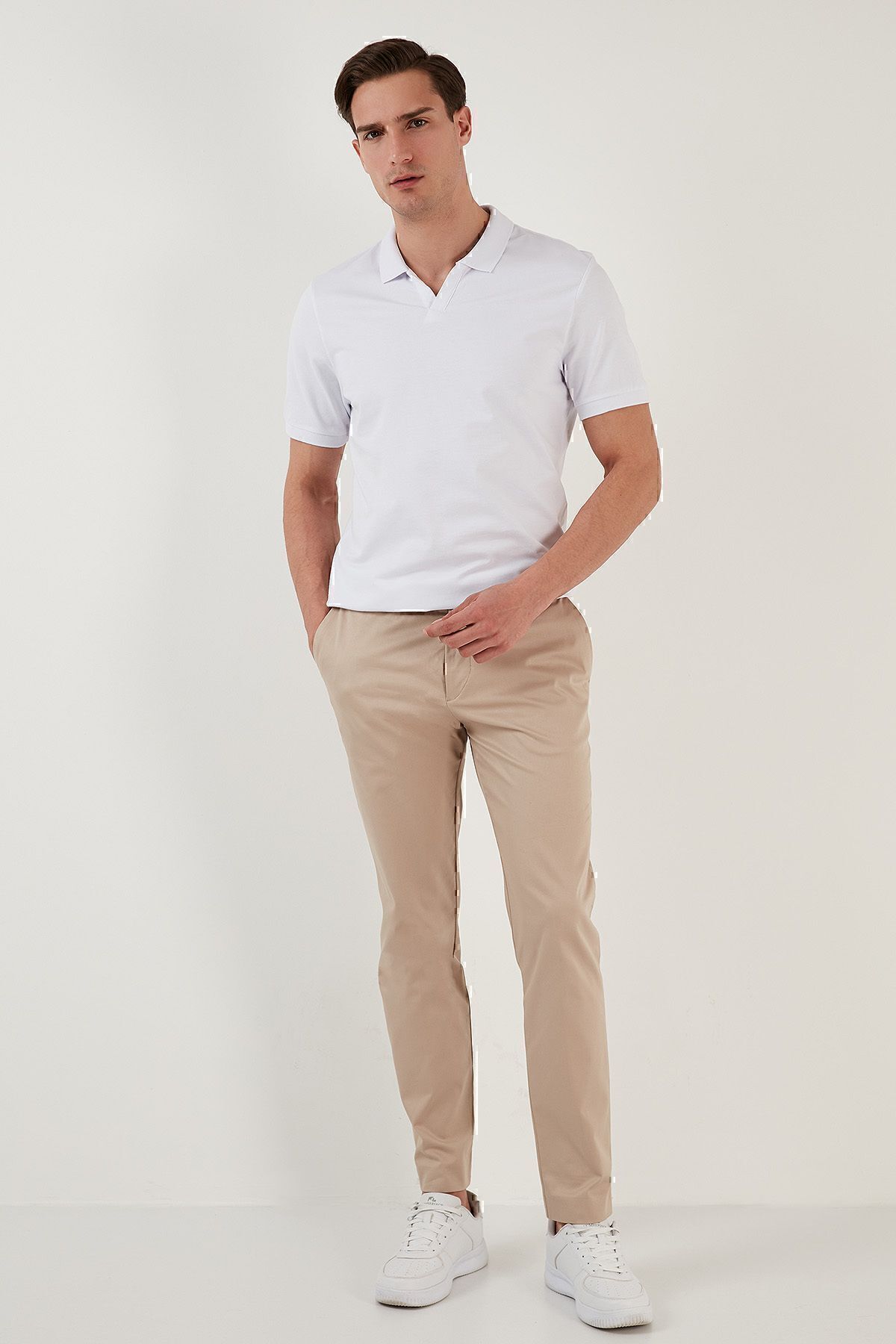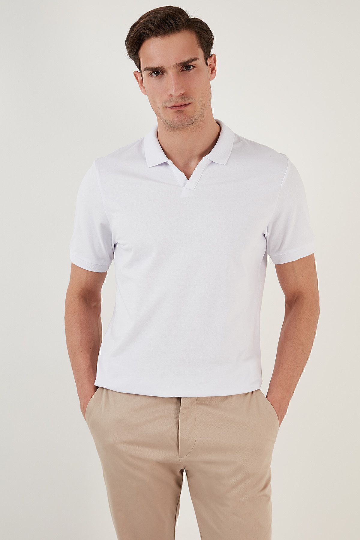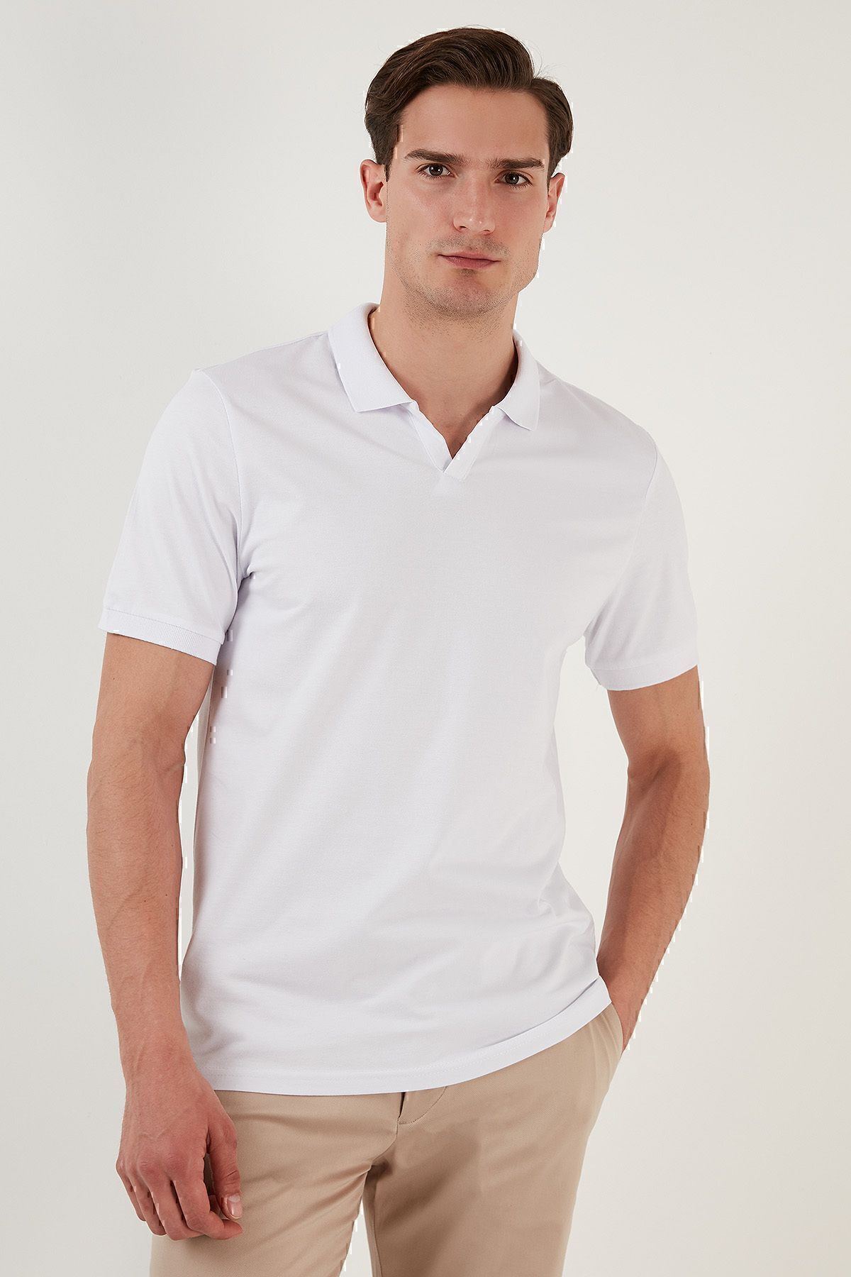 تیشرت یقه پولو نخی اسلیم فیت سفید Buratti