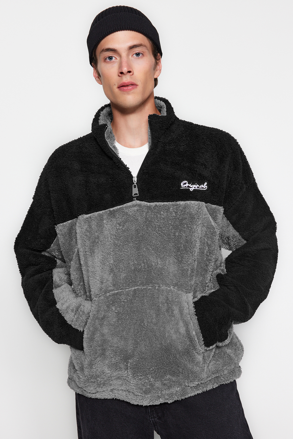 صفحه اصلی\همه سویشرت ها\سویشرت کلاهدار طرحدار پشمی سرمهای، یونیسکس اور سایز Trendyolmilla