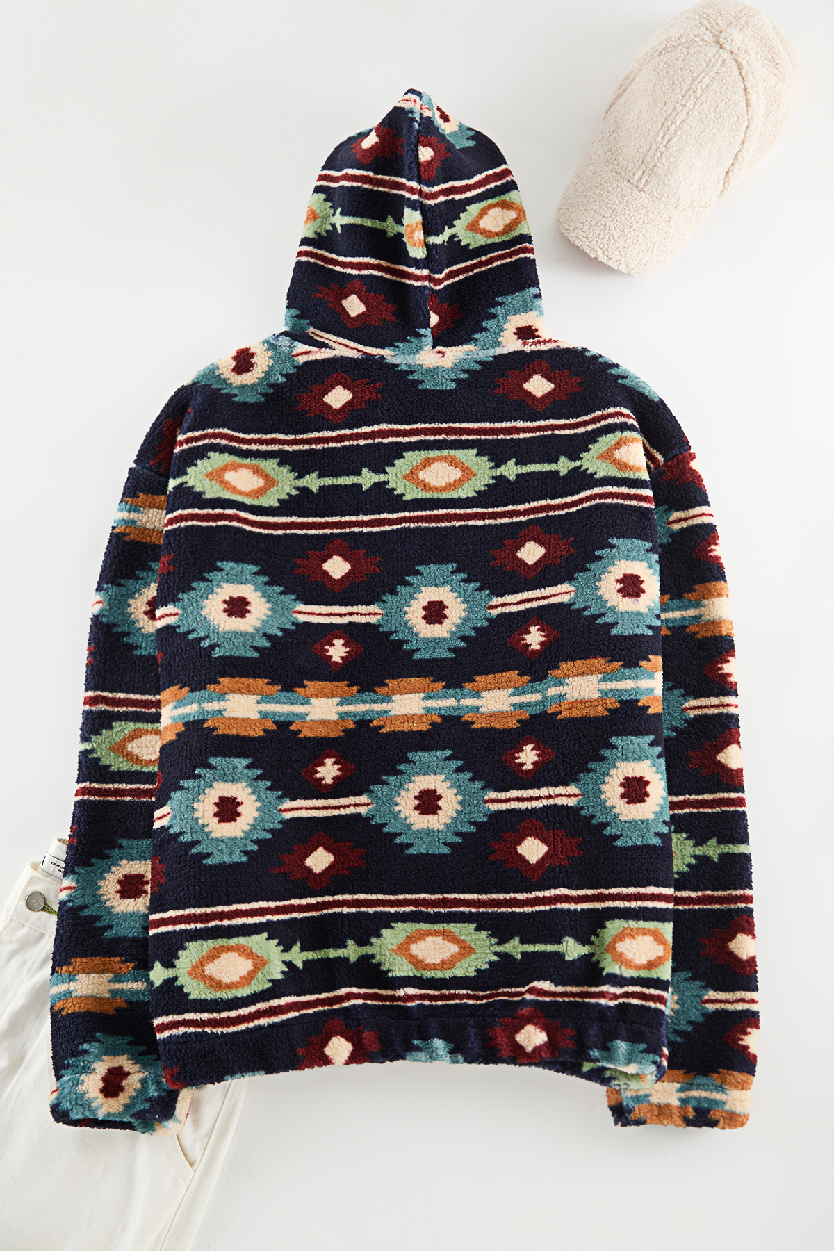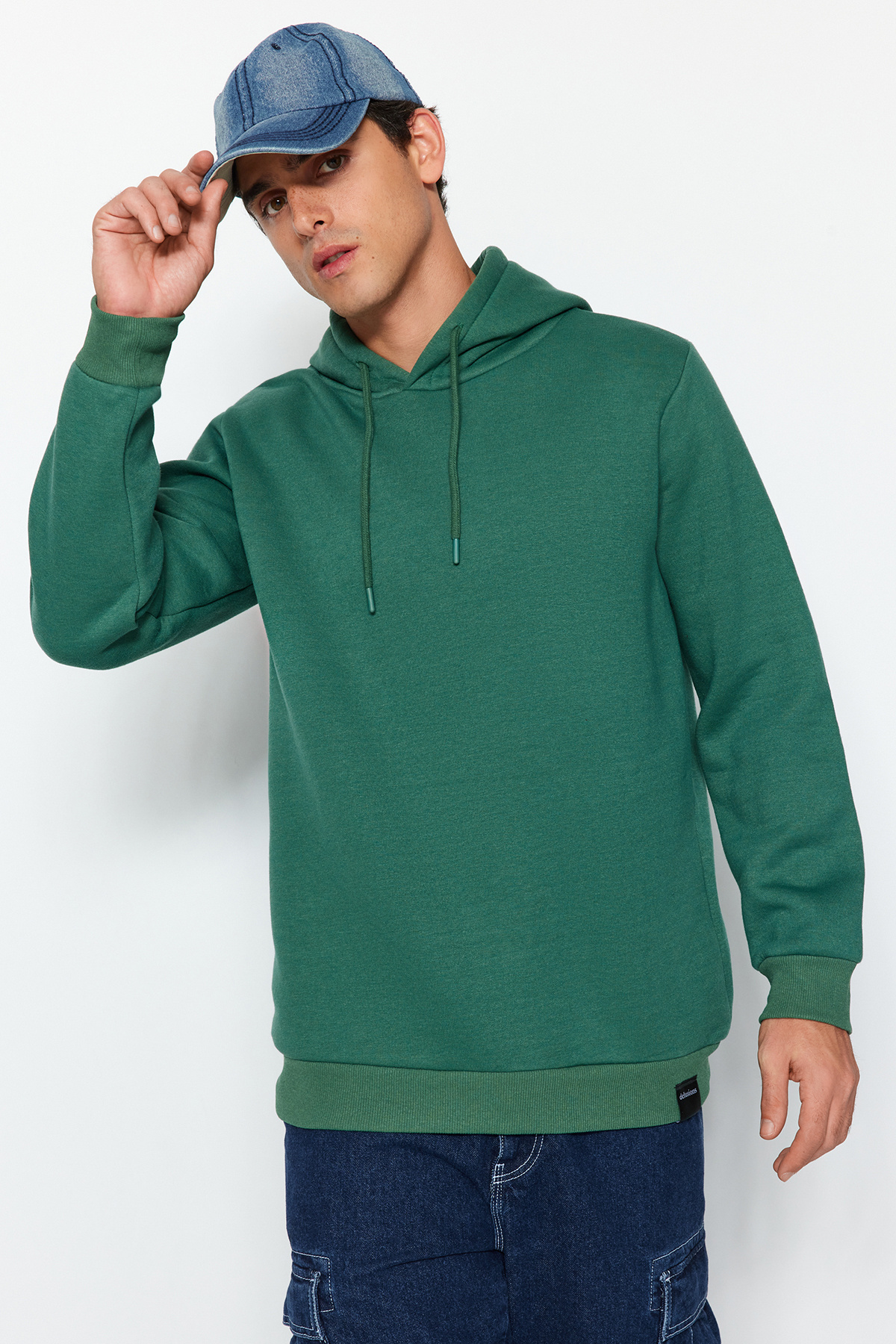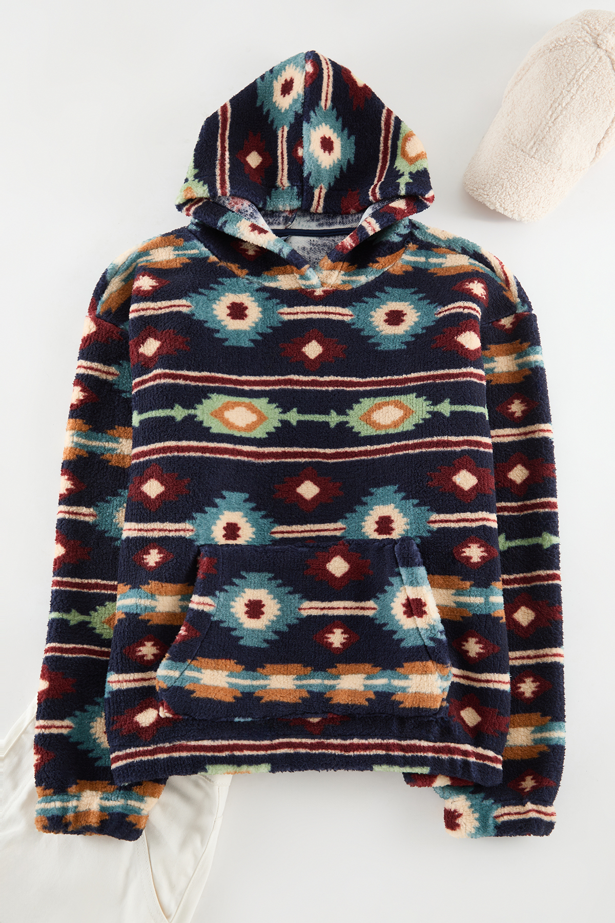 سویشرت کلاهدار طرحدار پشمی سرمهای، یونیسکس اور سایز Trendyolmilla