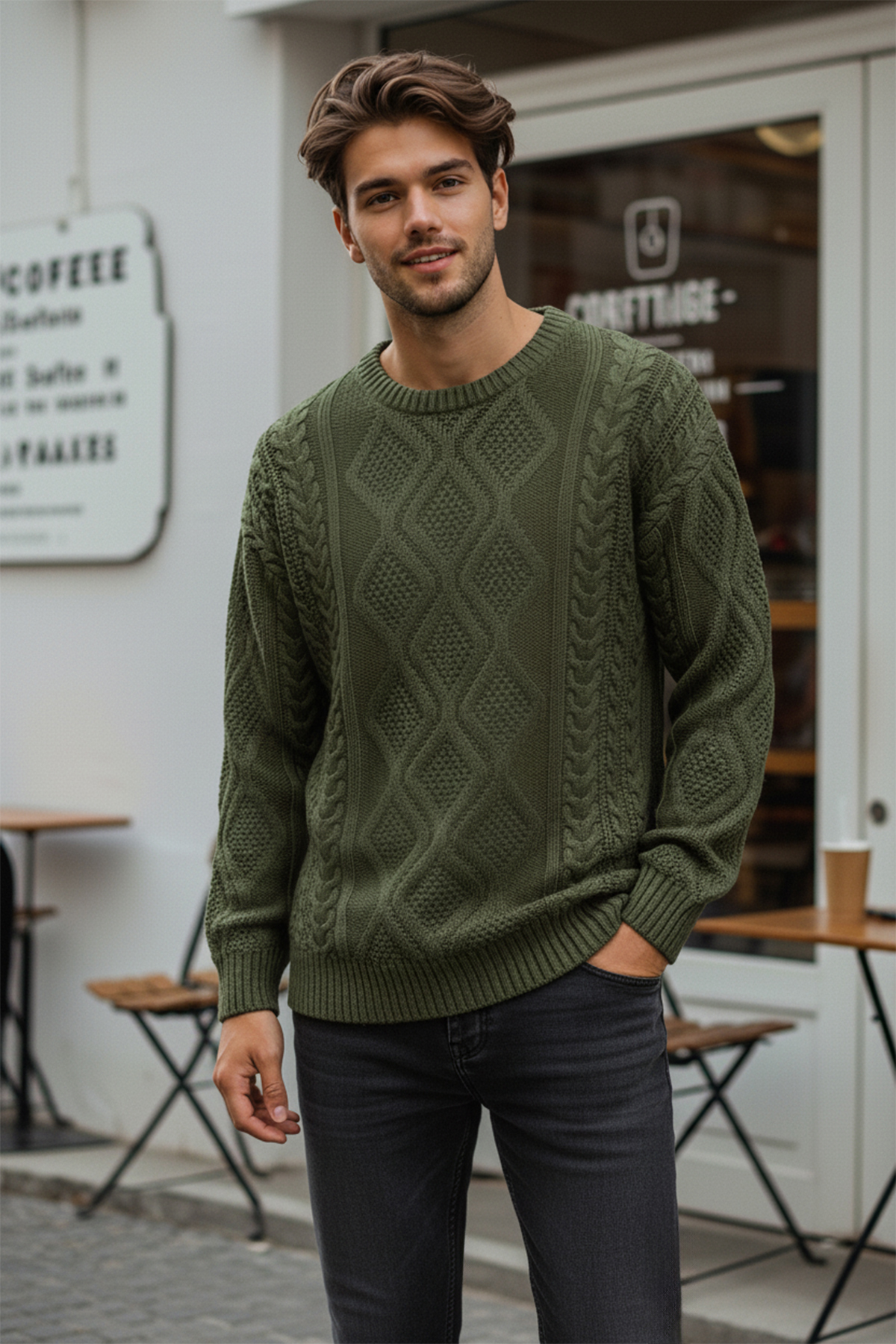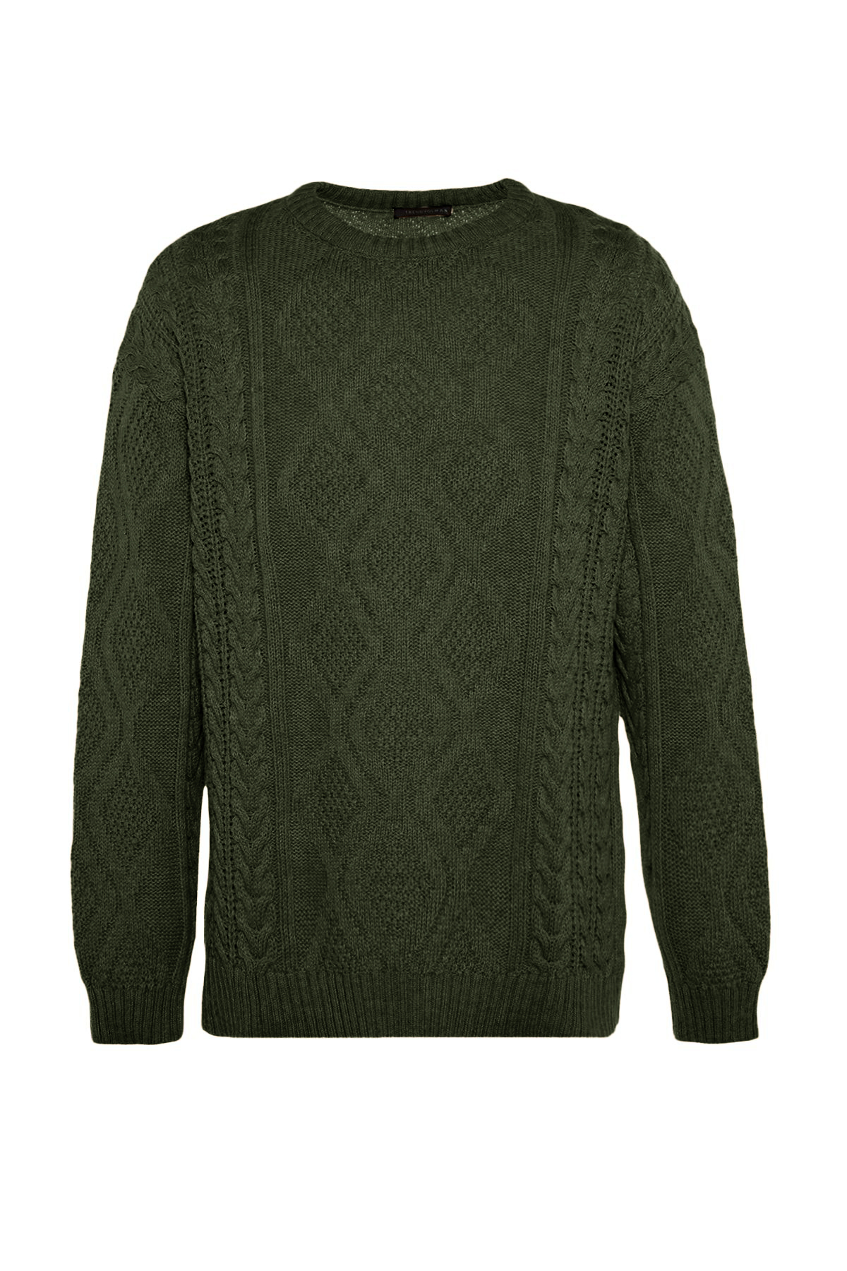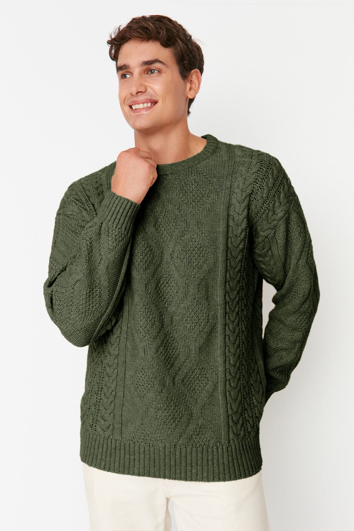 پلیور مردانه بافتنی یقه گرد اور سایز خاکی trendyolmilla man