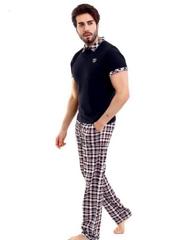 ست لباس خواب مردانه شطرنجی پهن با تناسب آبی سرمه ای PLATINUM سورمه ای