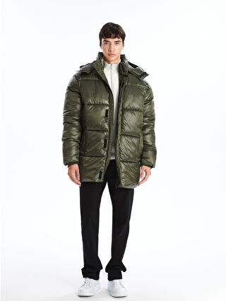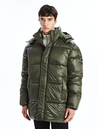 کاپشن بادی مردانه راحت و کلاه دار زیتونی XSIDE