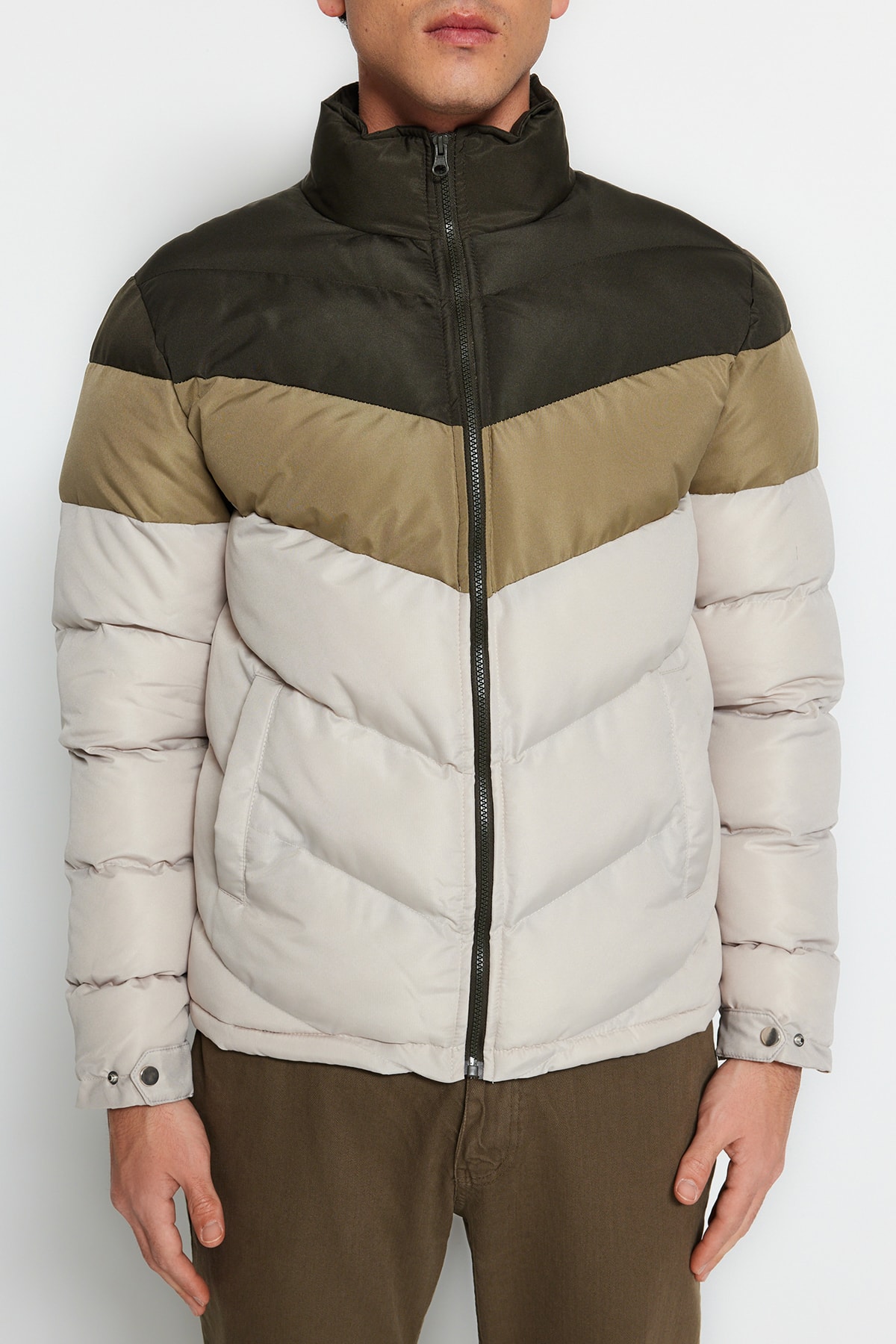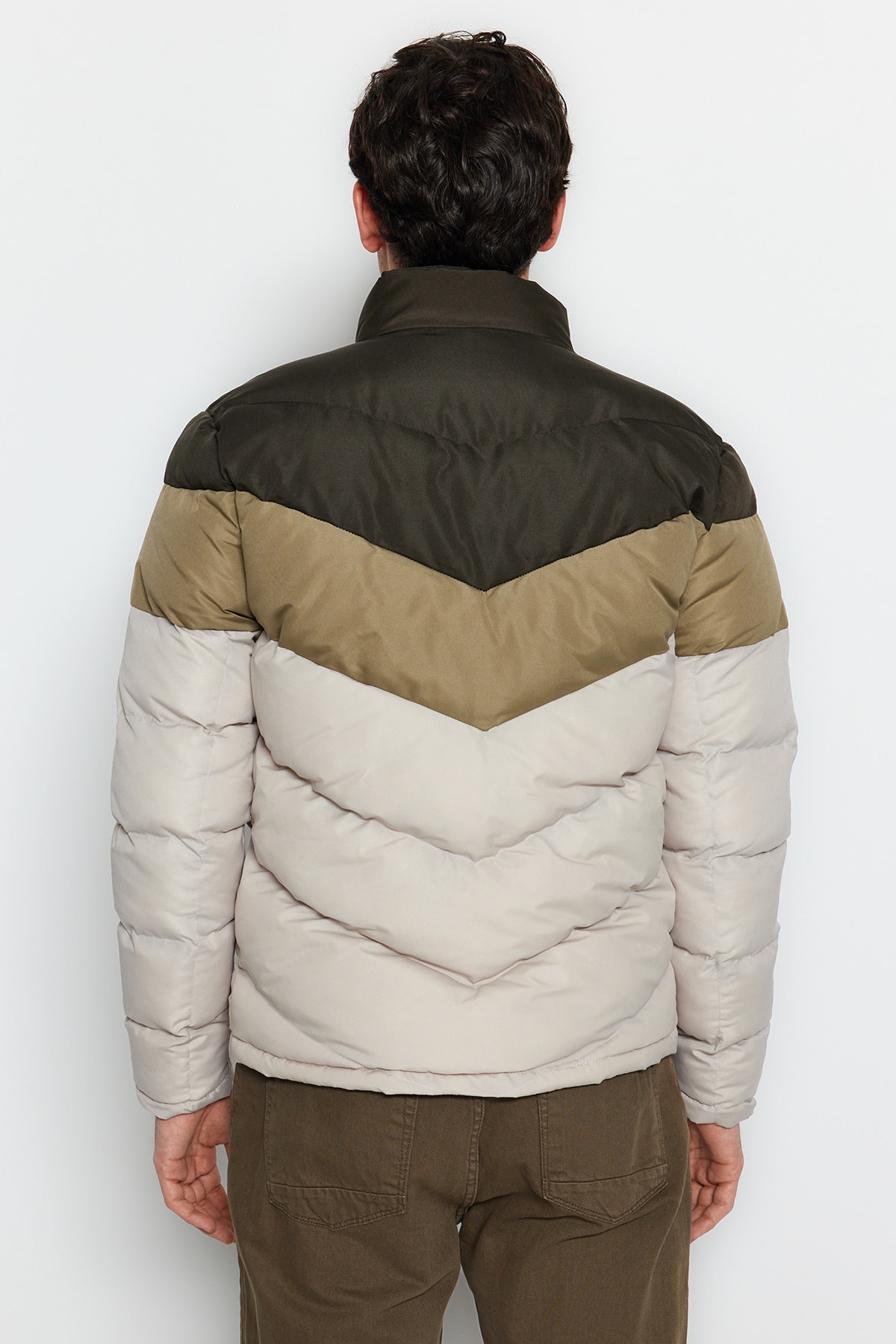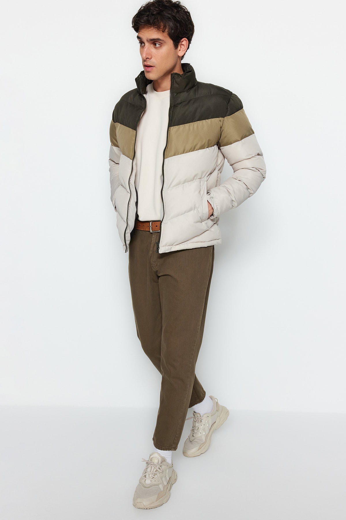 کاپشن زمستانی پفی خاکی معمولی، ضد باد و ضد آب Trendyolmilla Man