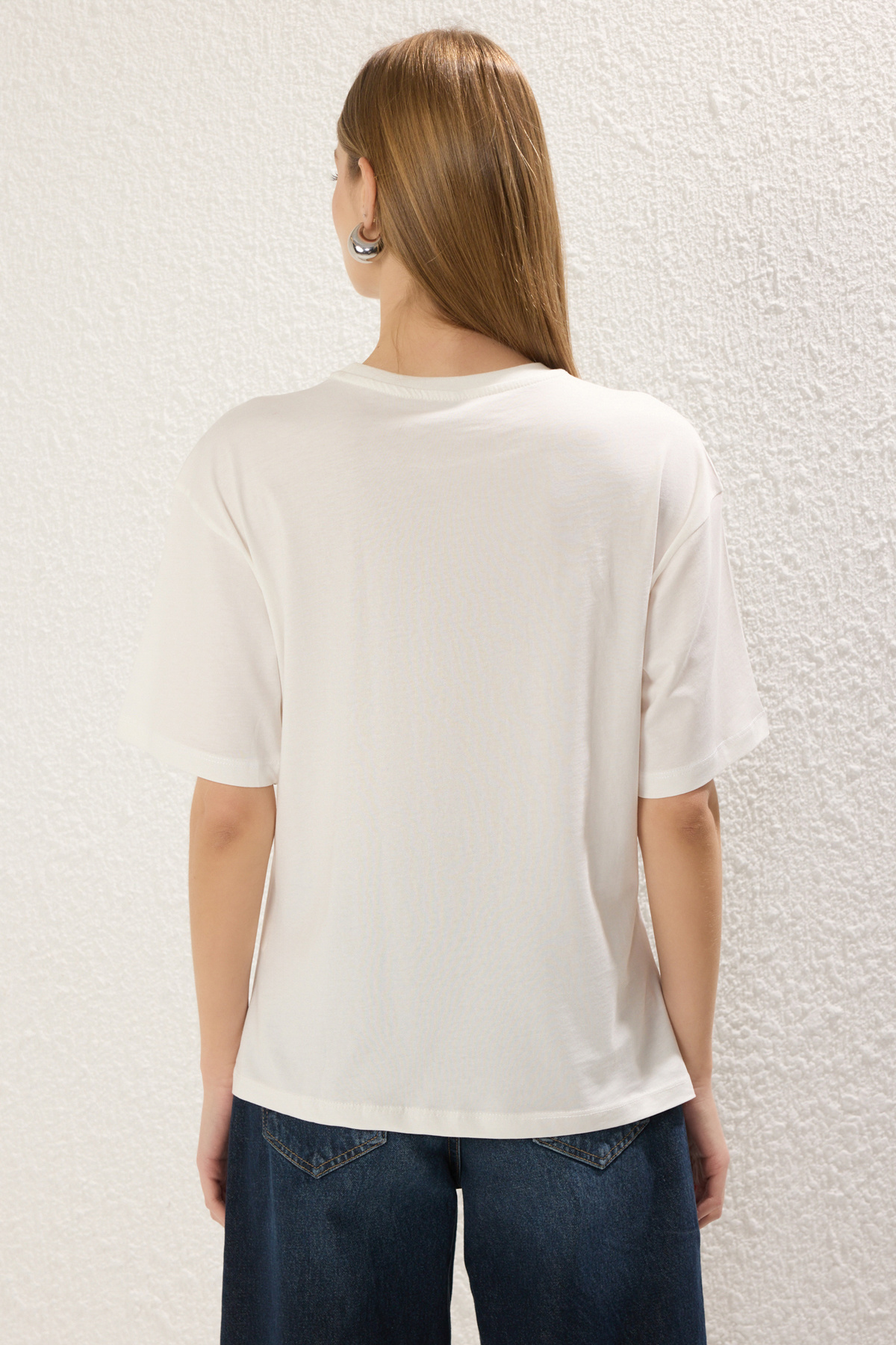 تشرت طرحدار گشاد/راحت، سفید، 100% پنبه Trendyolmilla
