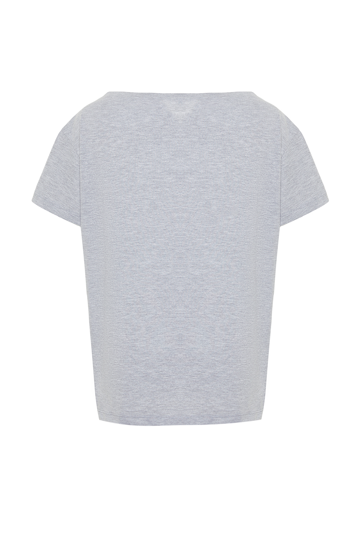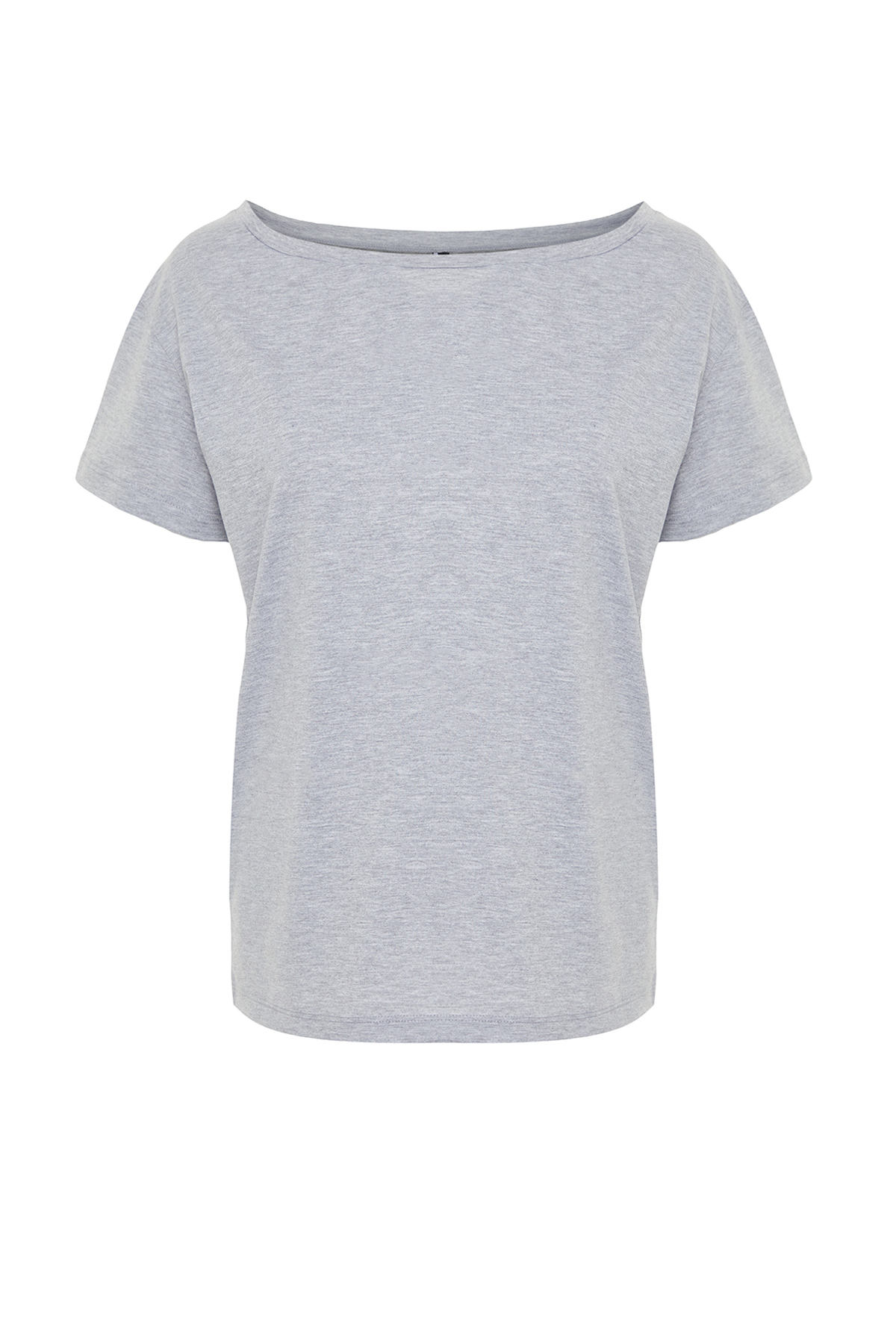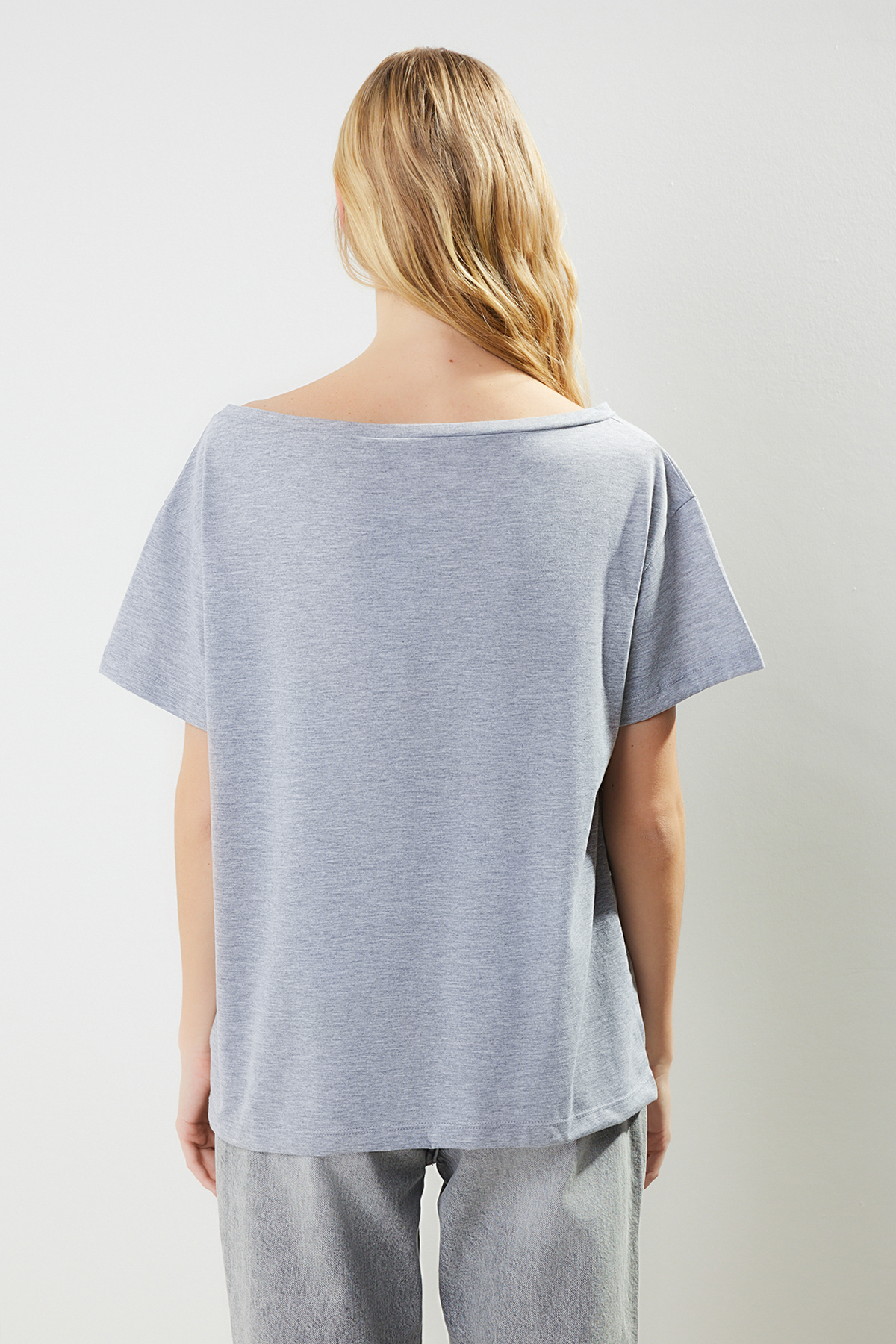 تیشرت زنانه یقه قایقی گشاد/اورسایز 100% پنبه طوسی Trendyolmilla