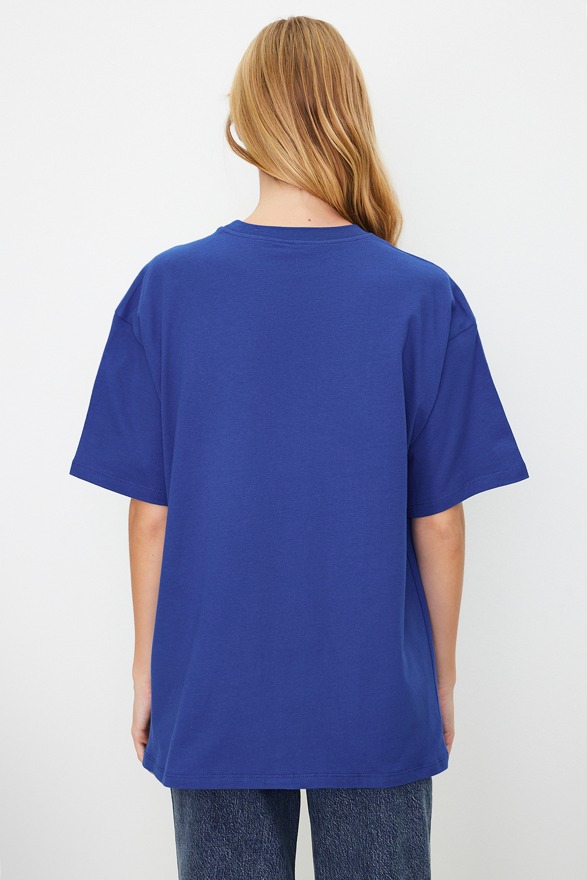 تیشرت زنانه آبی اور سایز یقه پهن Trendyolmilla