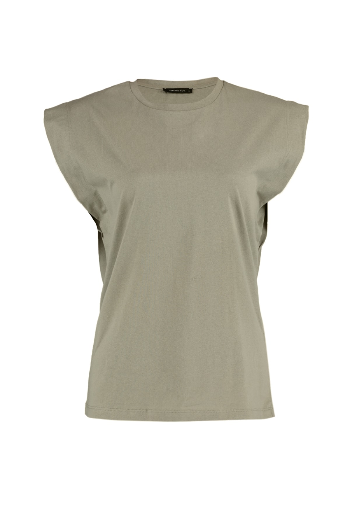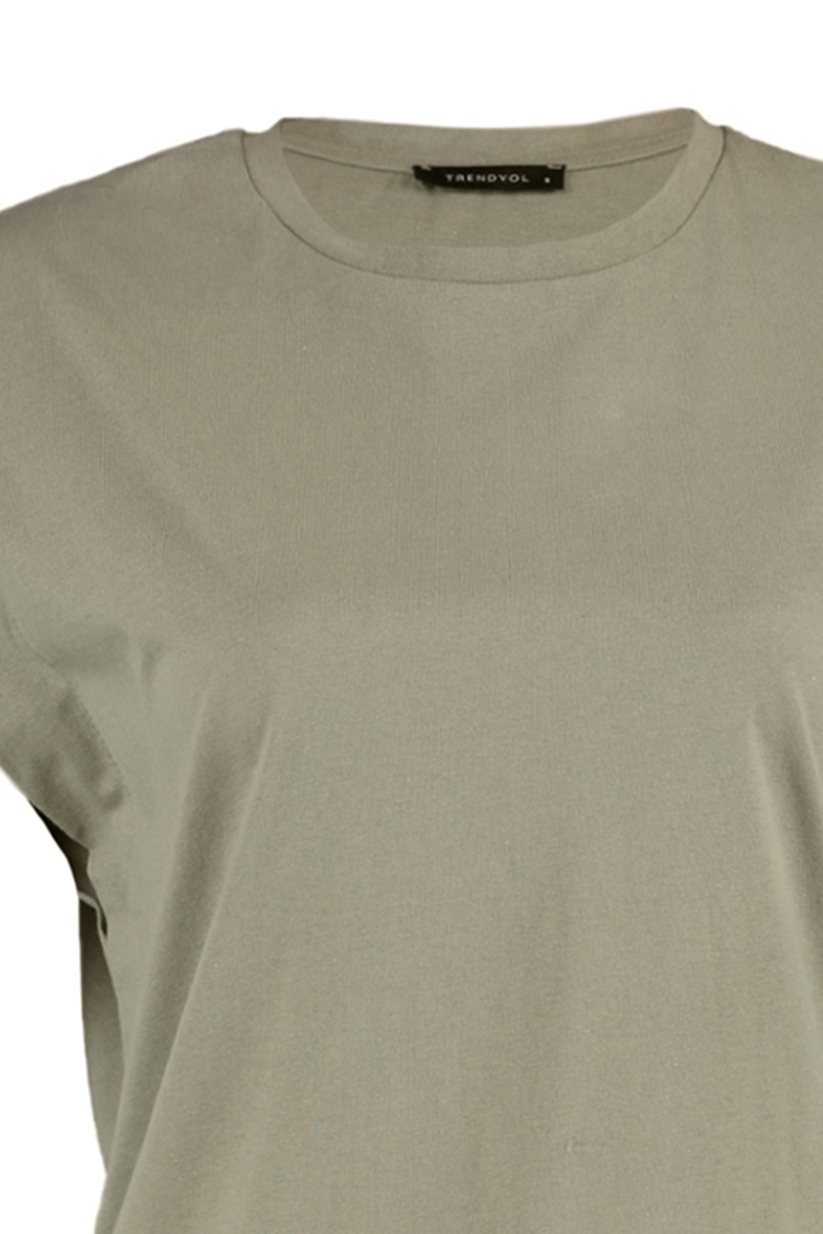 تیشرت زنانه یقه گرد ساده 100% پنبهای خاکی Trendyolmilla