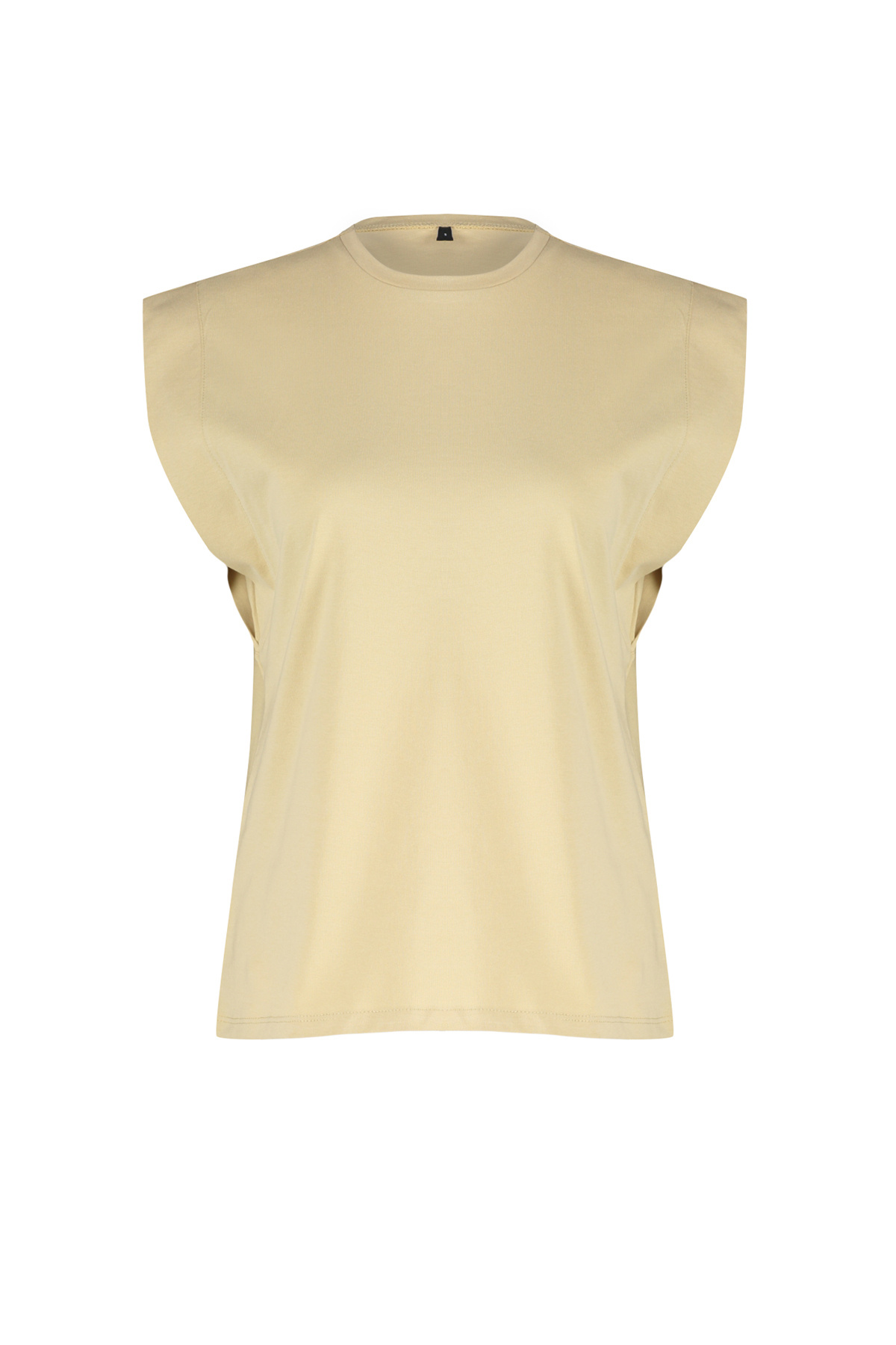 تیشرت زنانه یقه گرد ساده 100% پنبهای کرم Trendyolmilla
