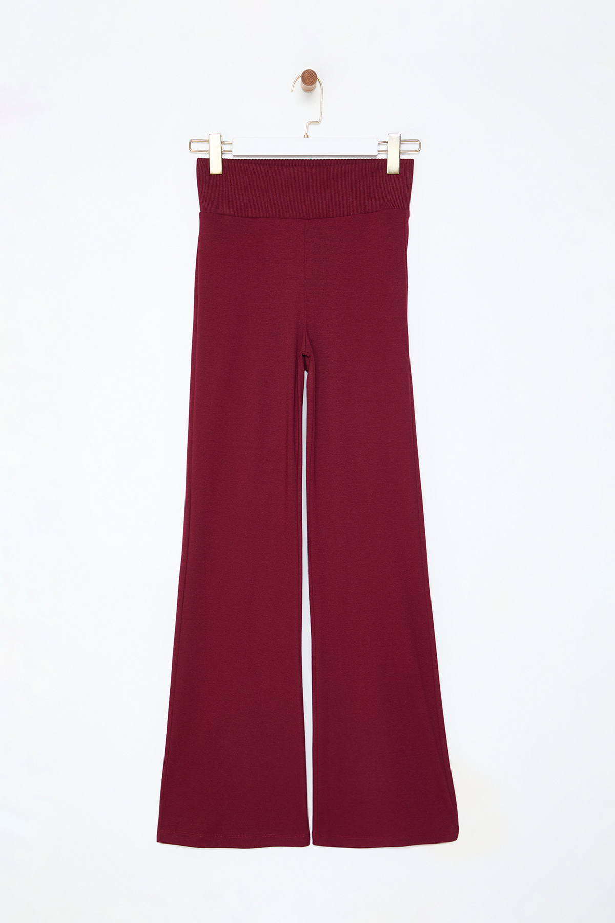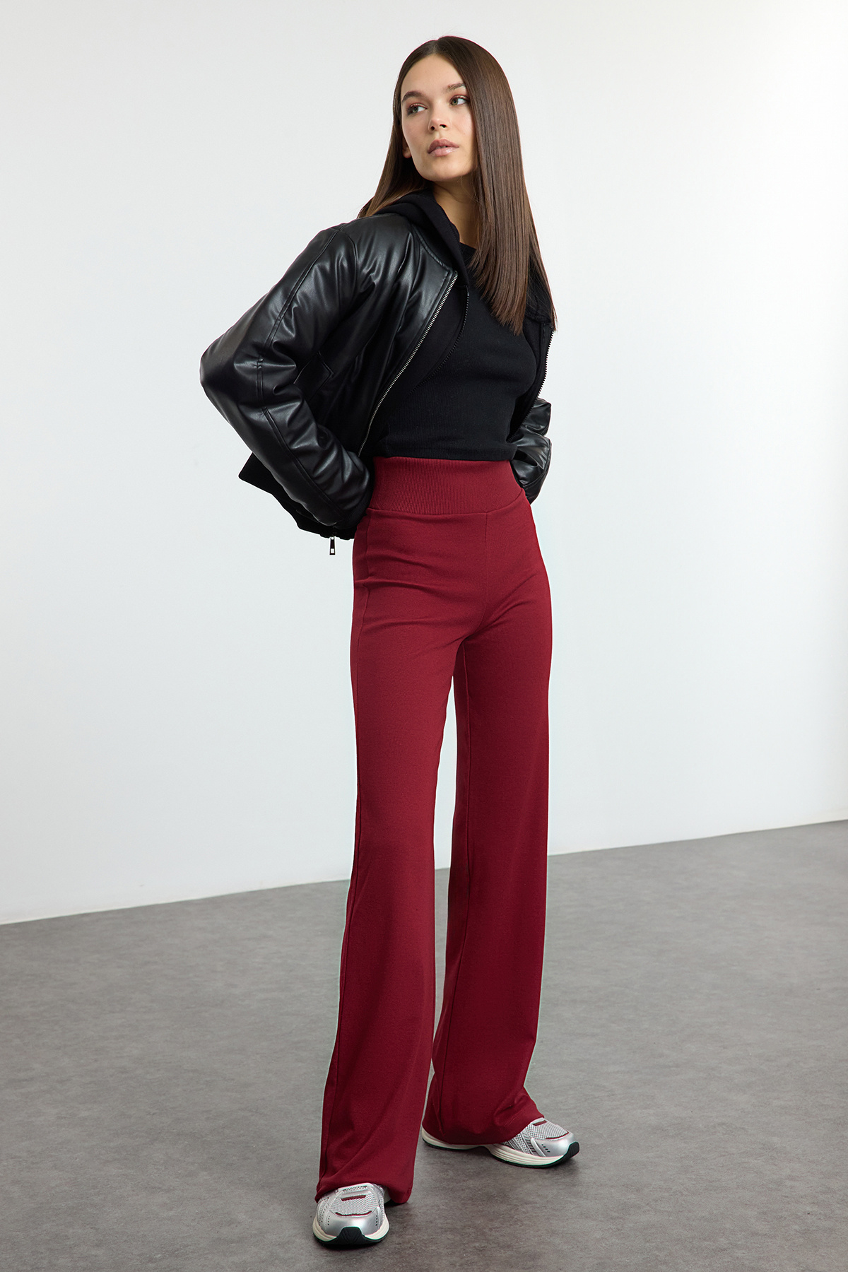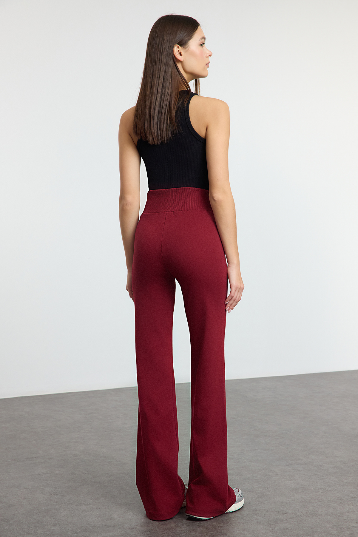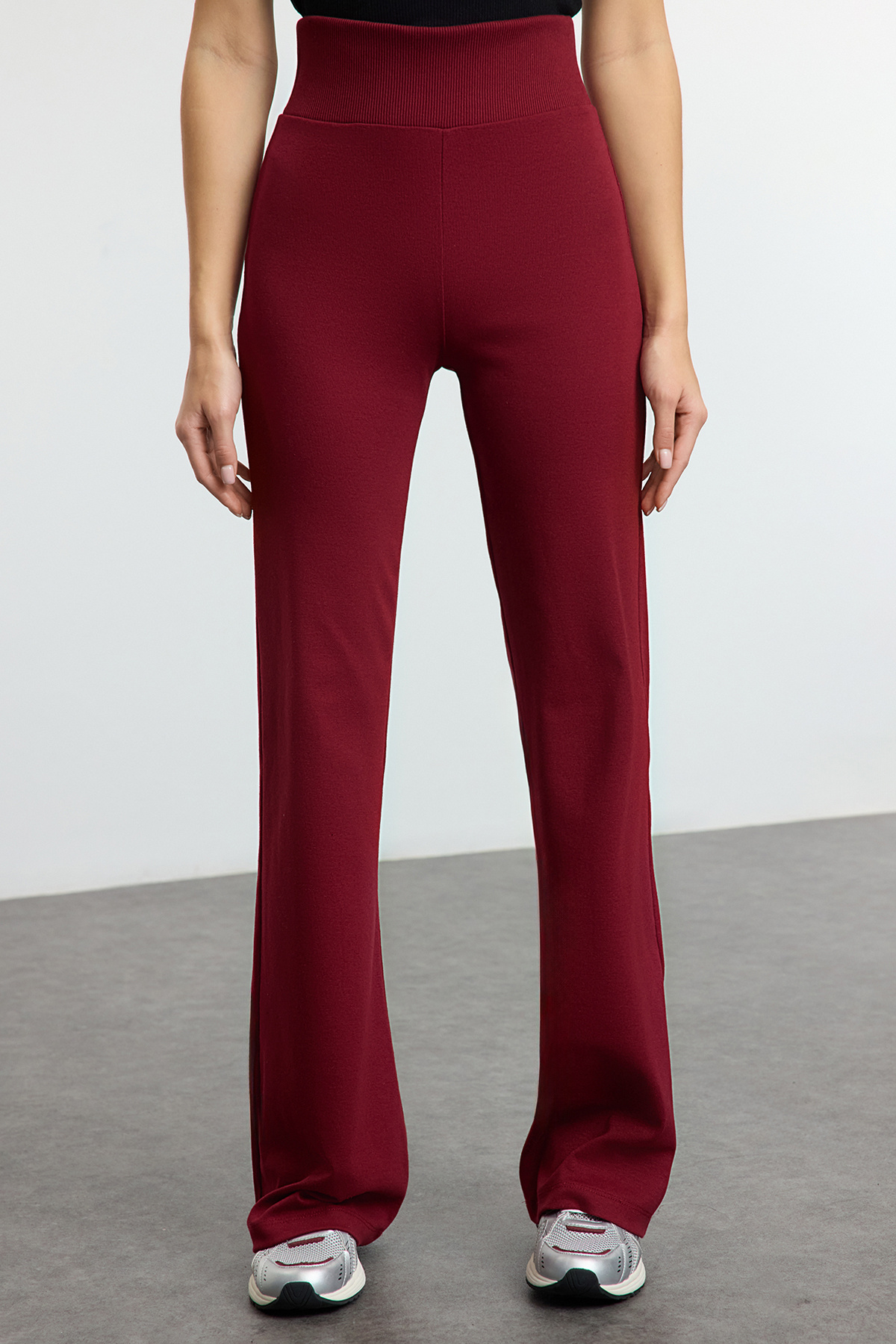 شلوار ckhki انعطاف پذیر طرح اسپانیایی سرخ شرابی TRENDYOLMILLA