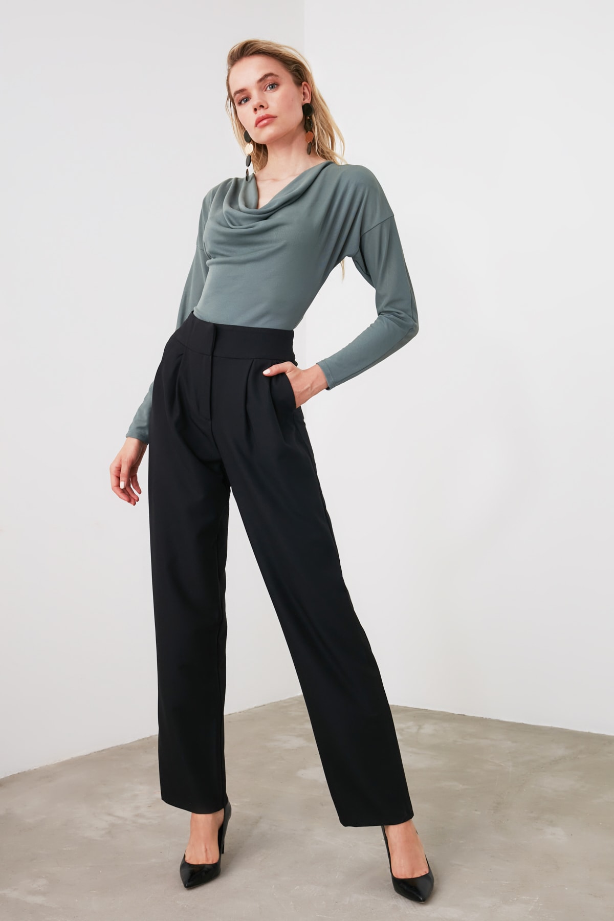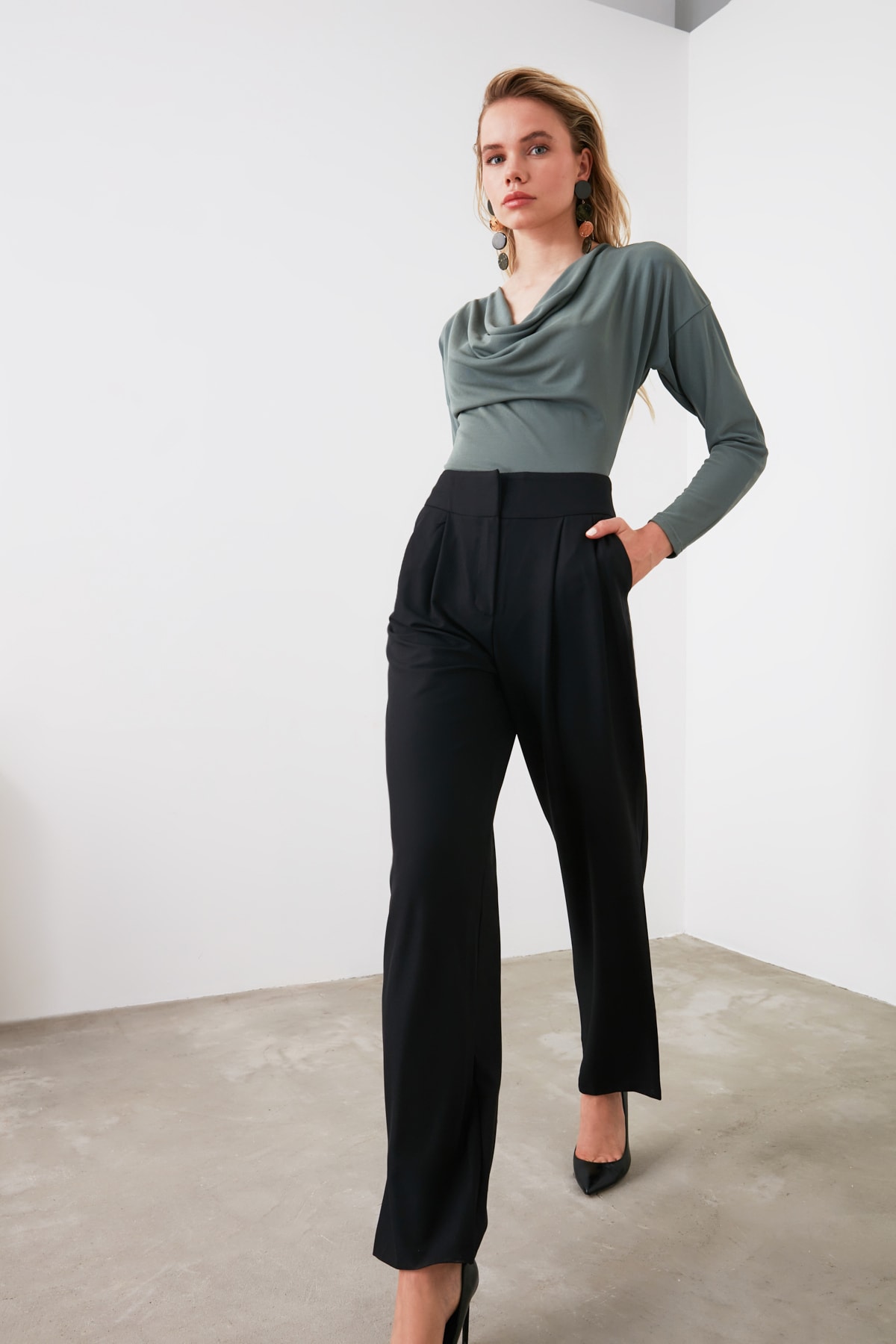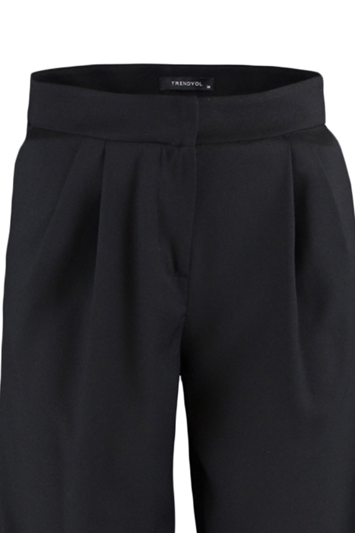 شلوار زنانه چین دار برش مستقیم مشکی TRENDYOLMILLA