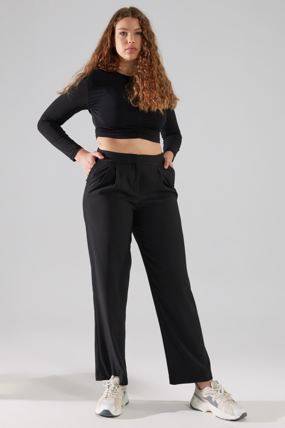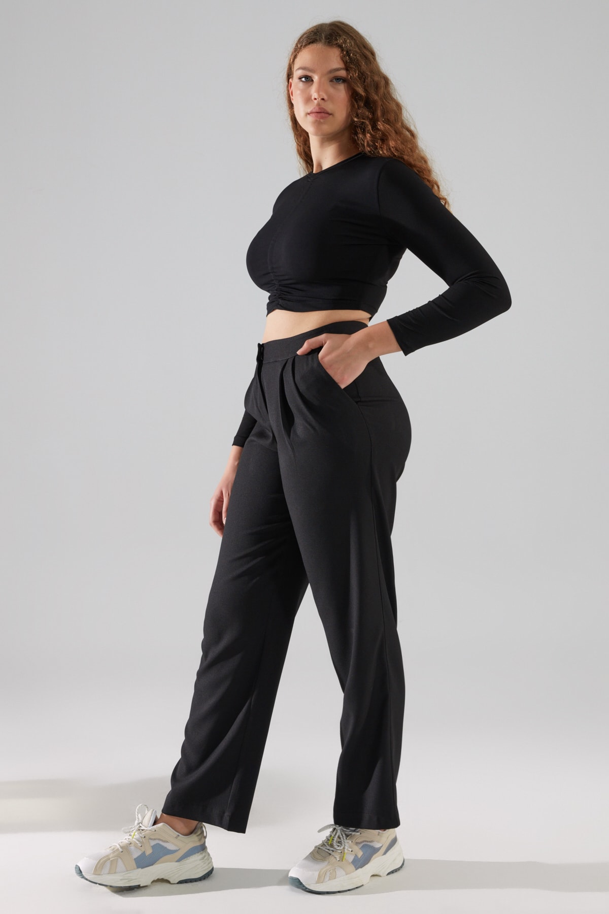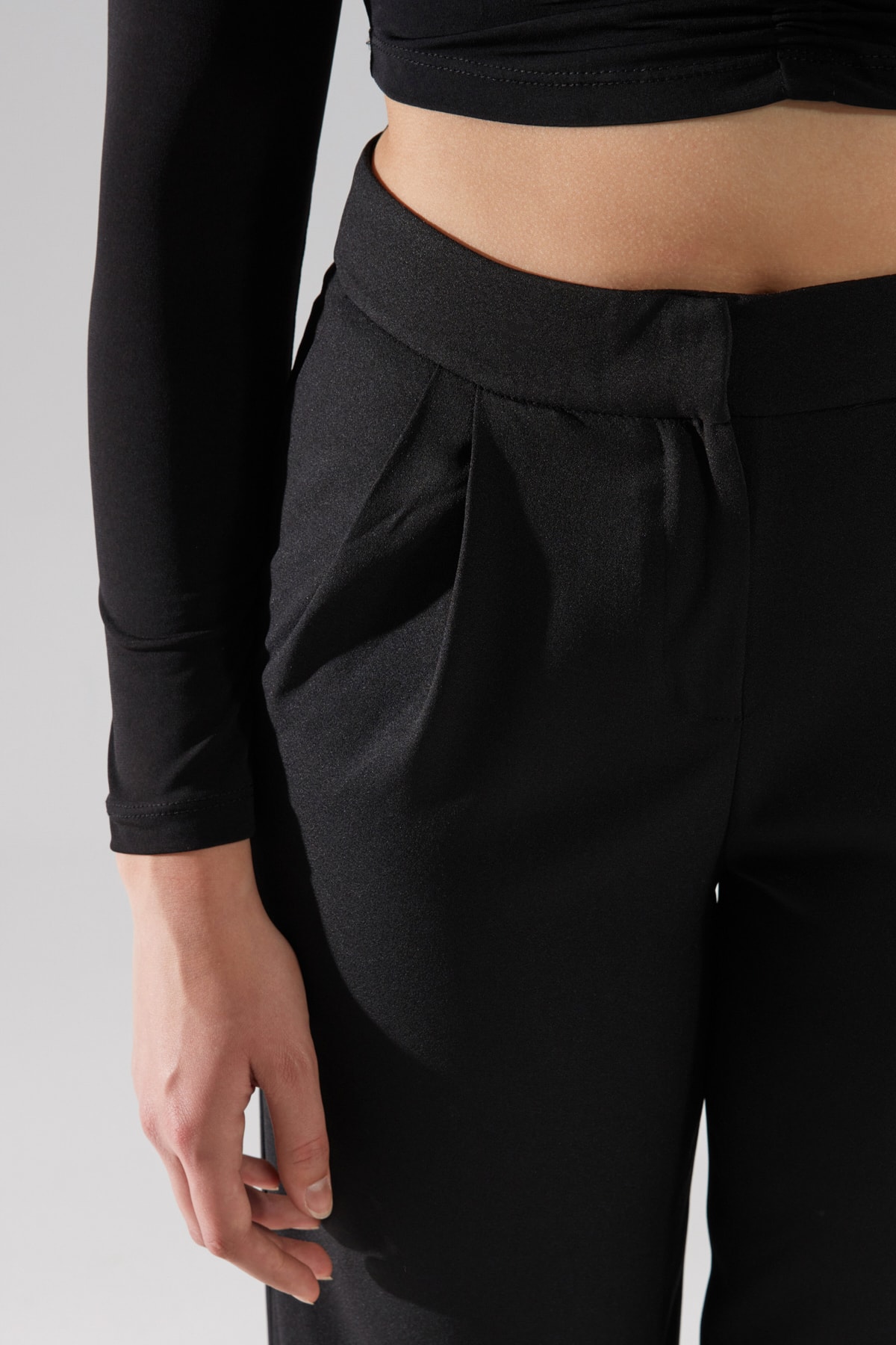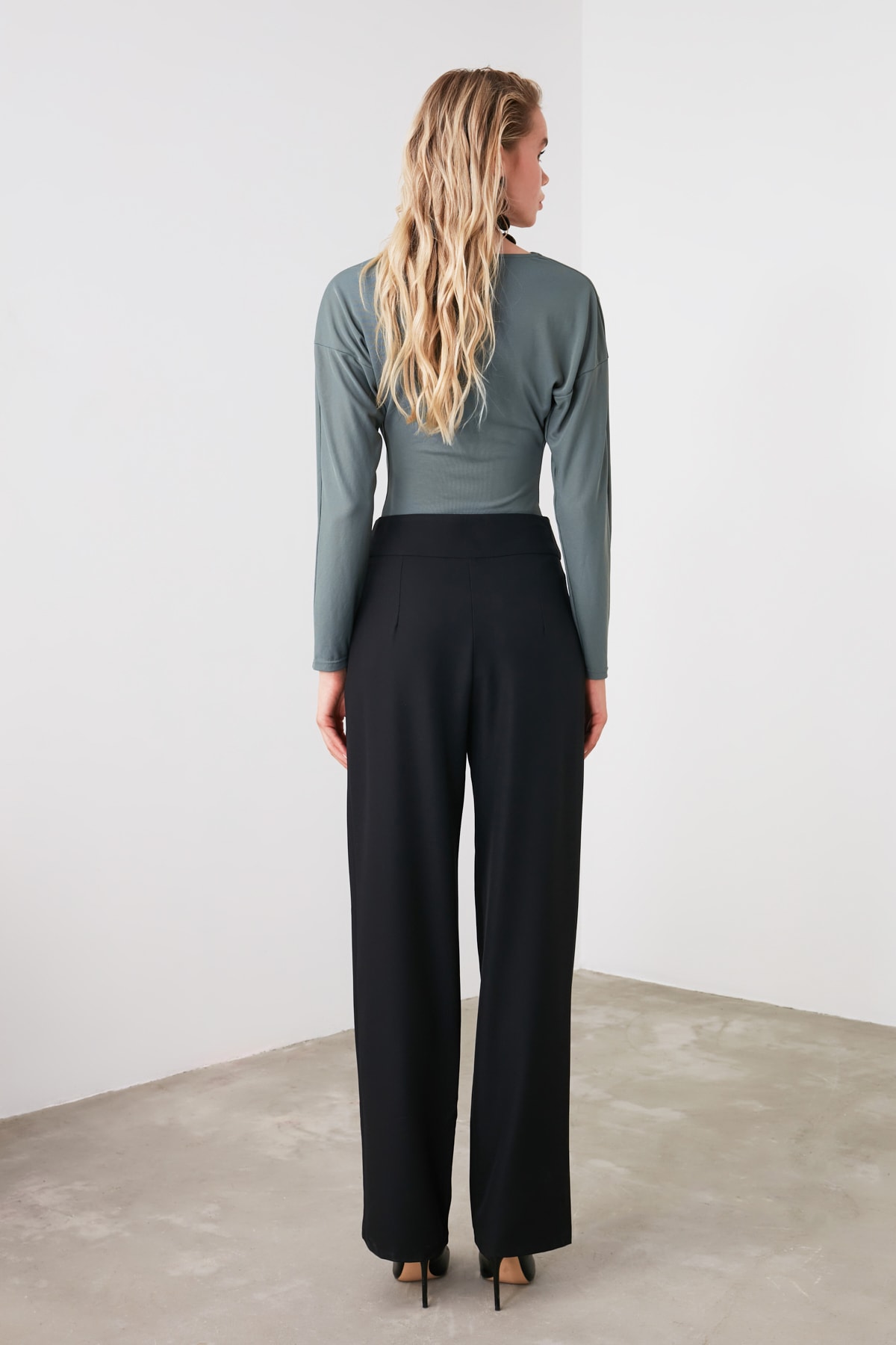شلوار زنانه چین دار برش مستقیم مشکی TRENDYOLMILLA