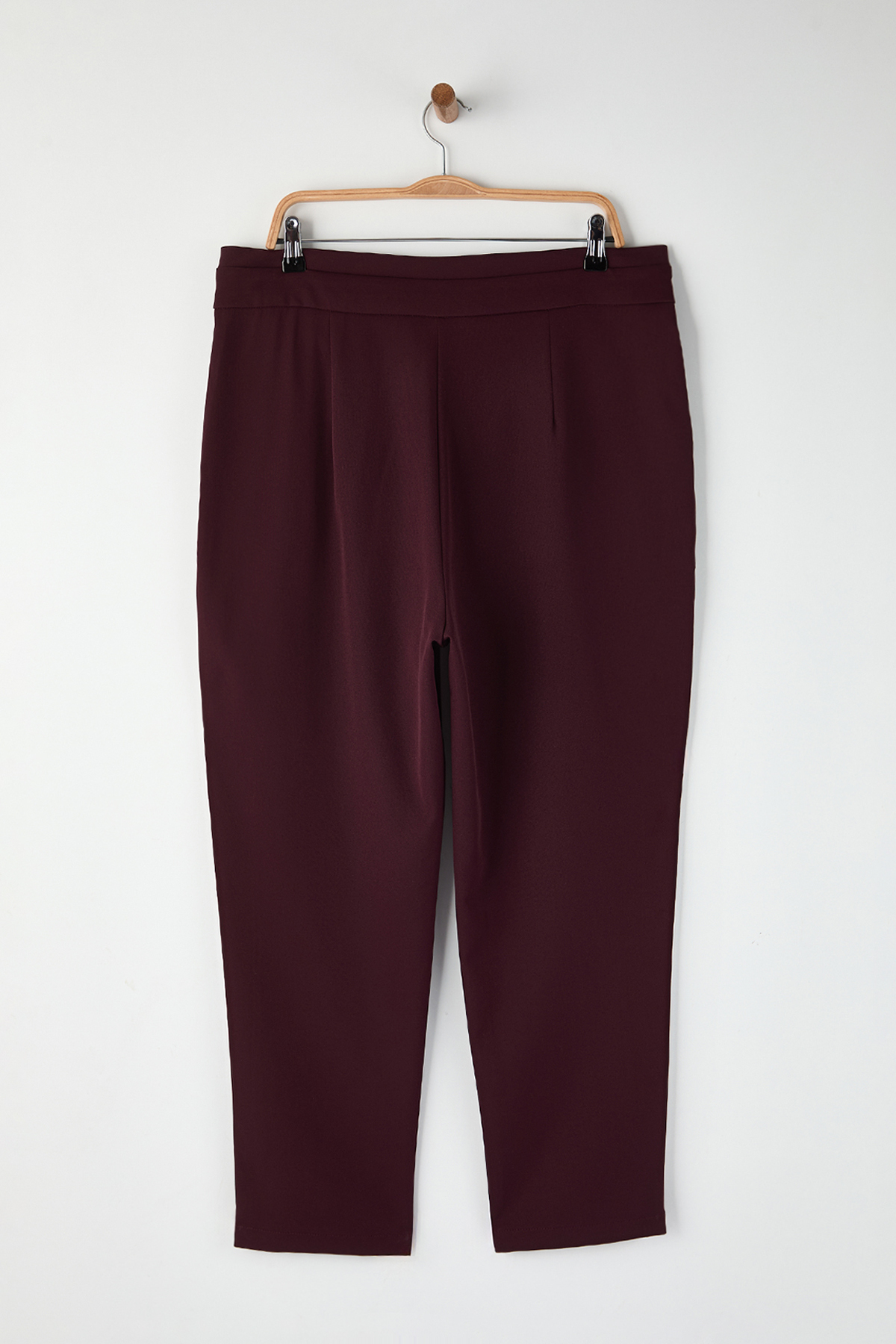 شلوار زنانه پارچهای با کمربند قابل تنظیم زرشکی trendyolmilla