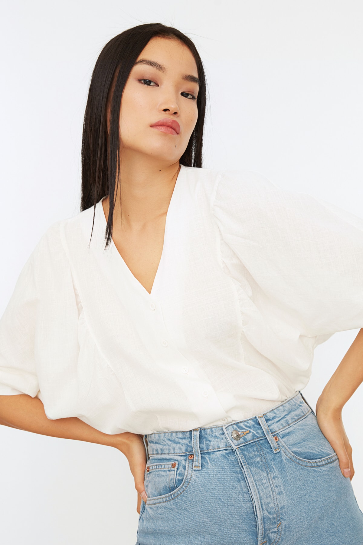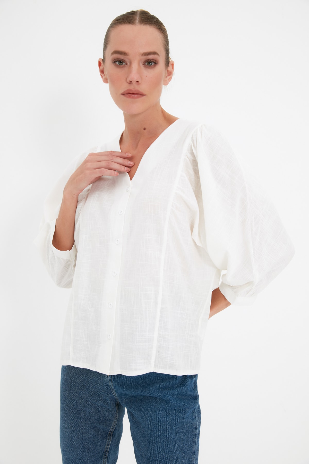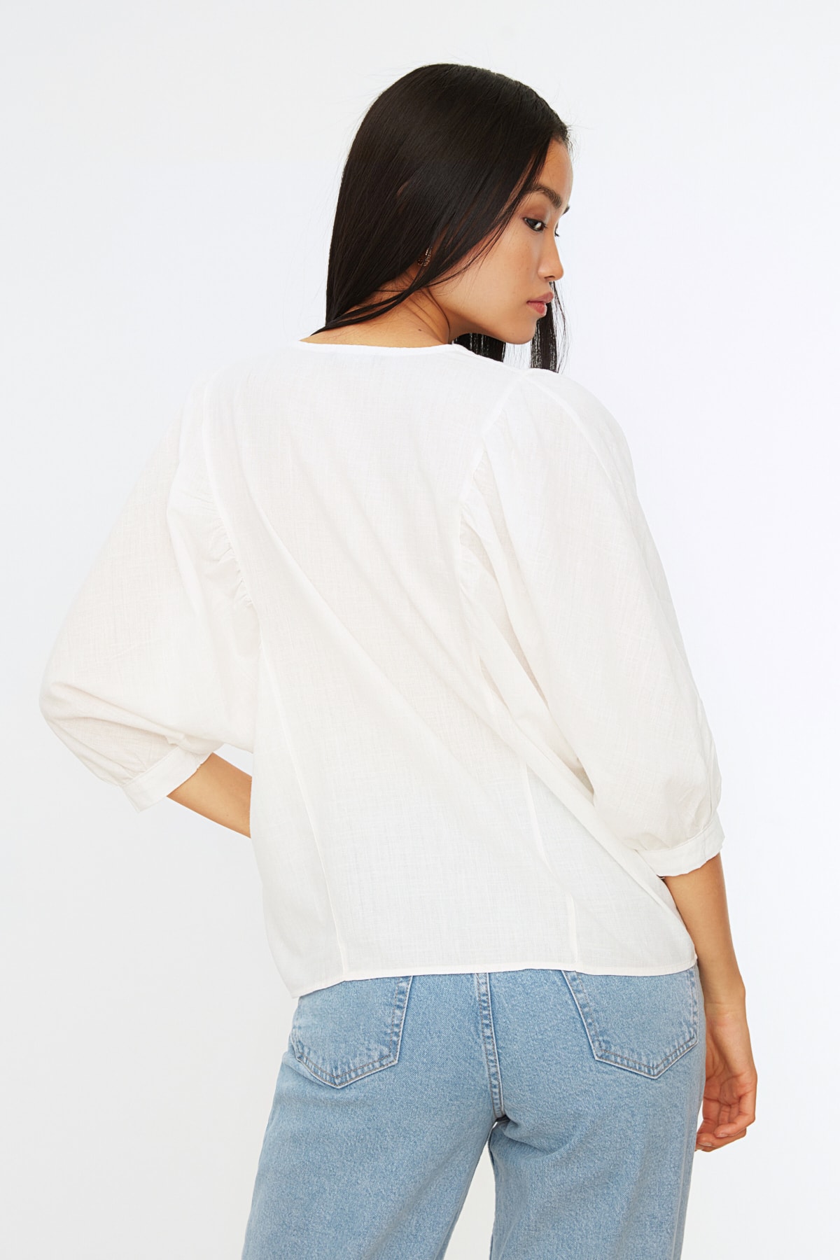 پیراهن زنانه با مدل آستین خفاشی سفید TRENDYOLMILLA