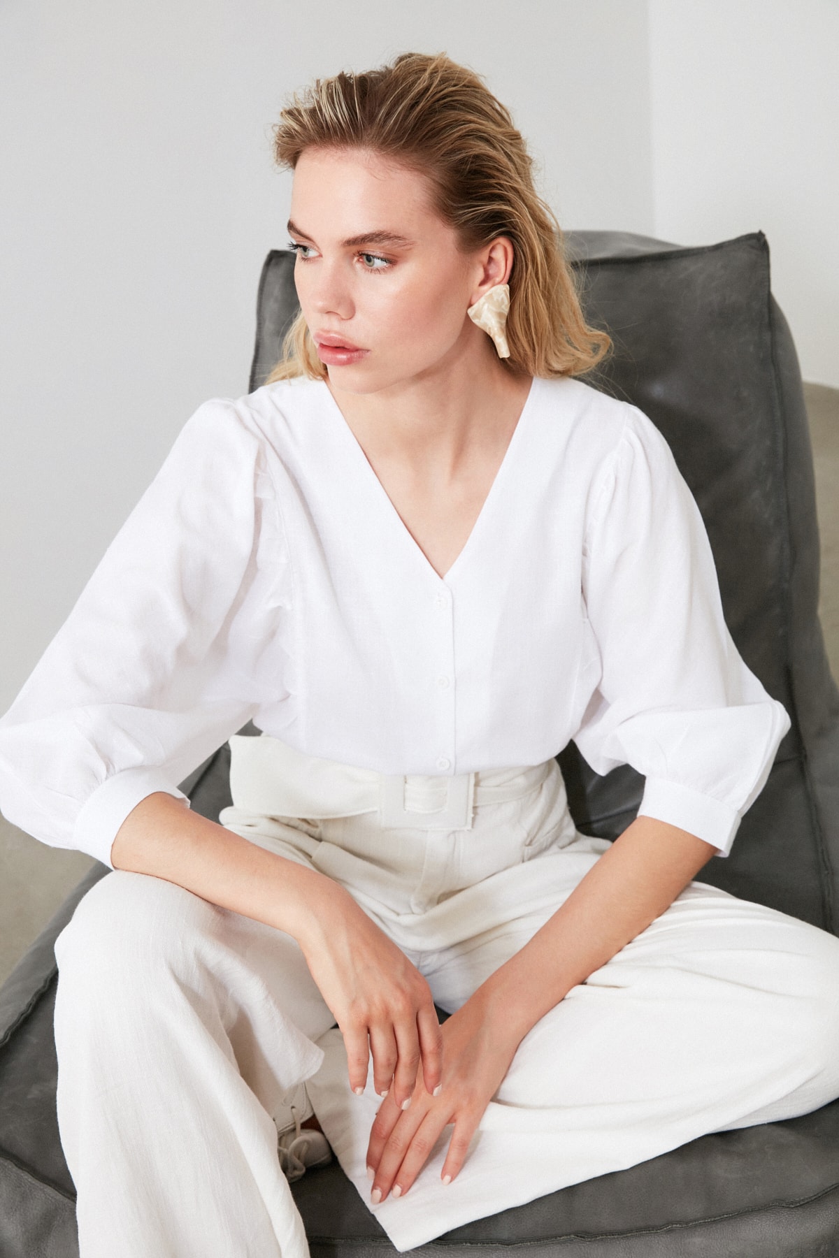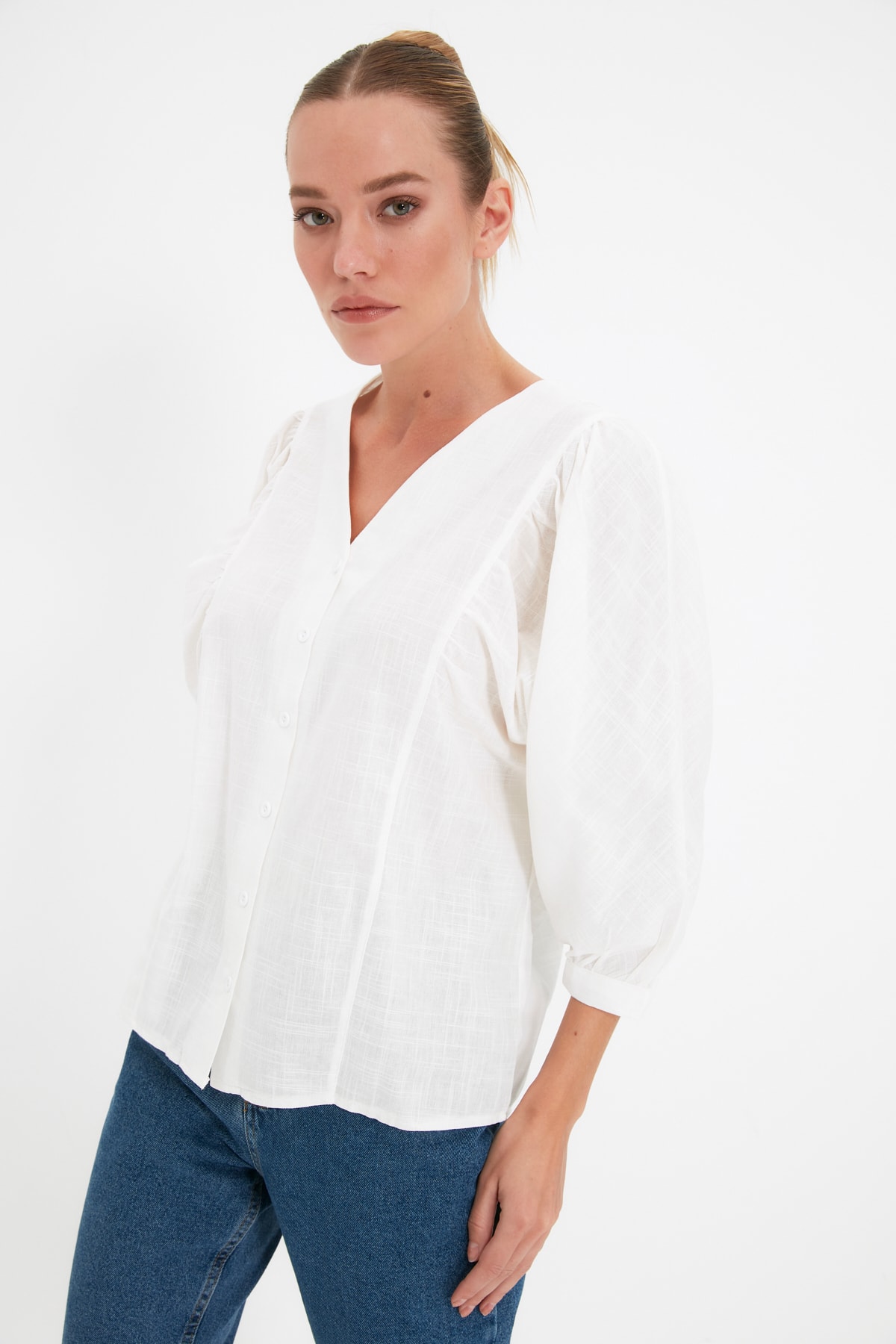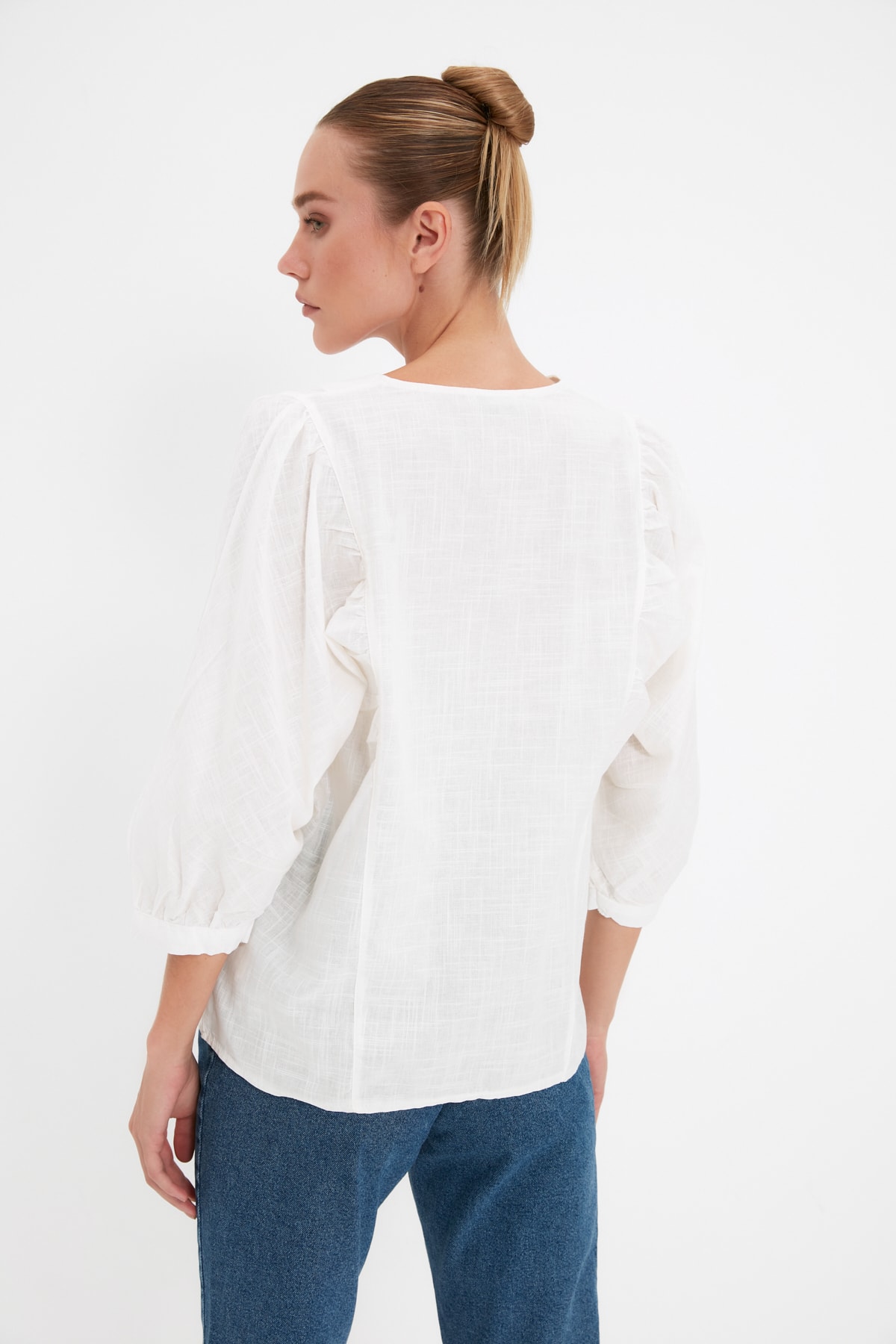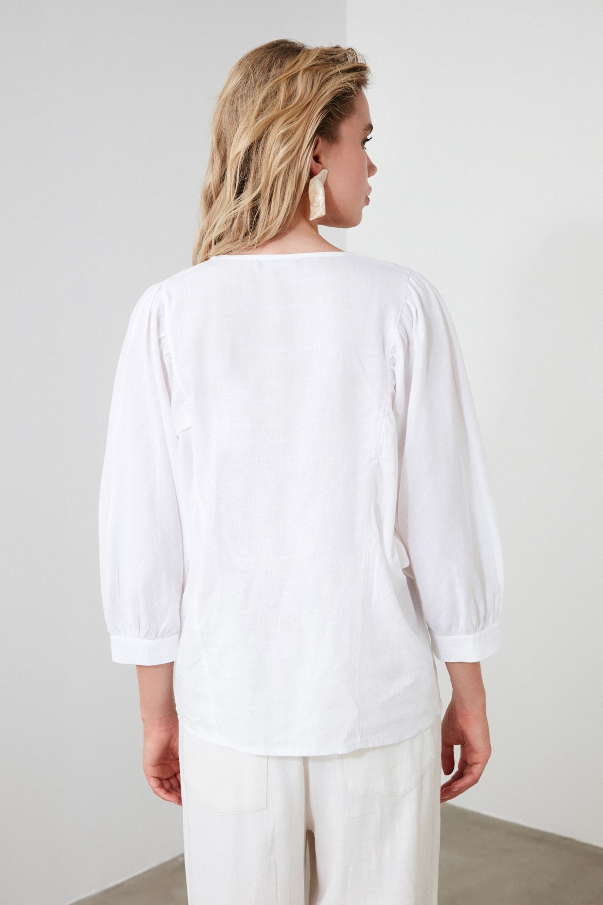 پیراهن زنانه با مدل آستین خفاشی سفید TRENDYOLMILLA