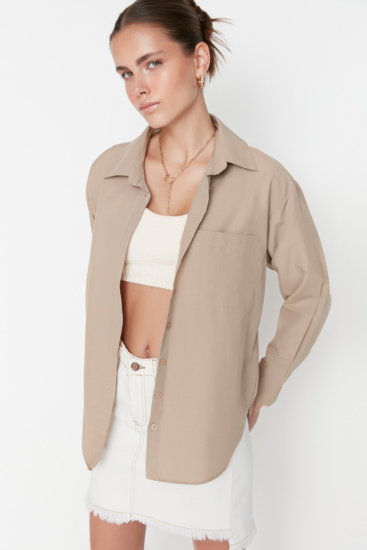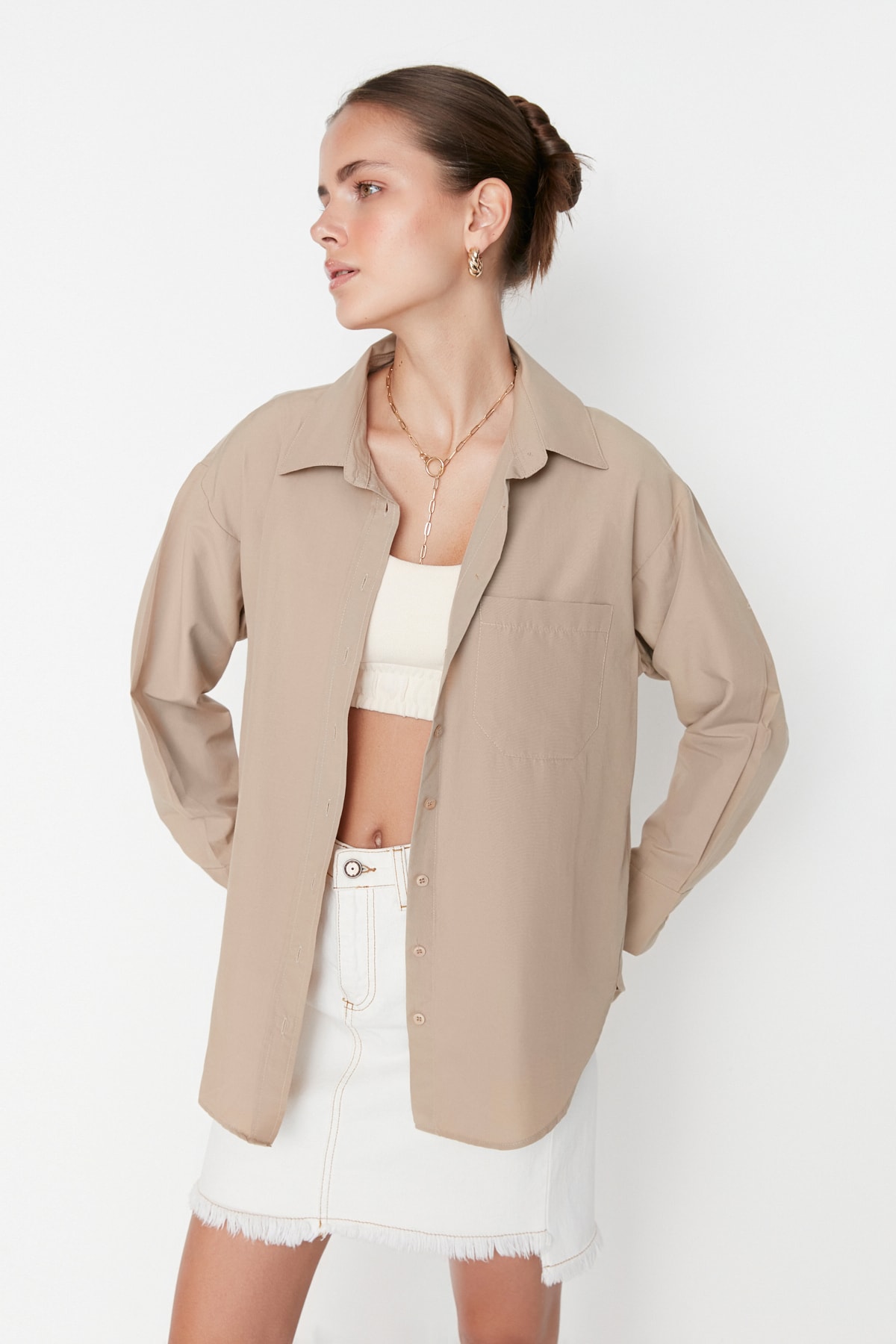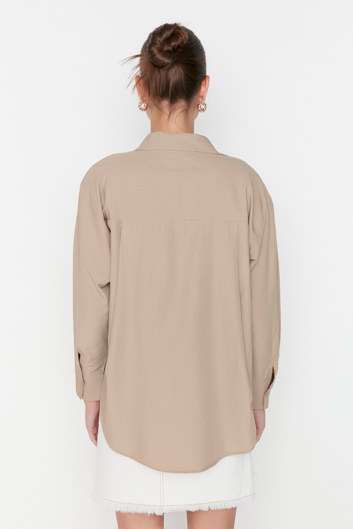 پیراهن زنانه آستین بلند پوپلین اورسایز سفید Defacto
