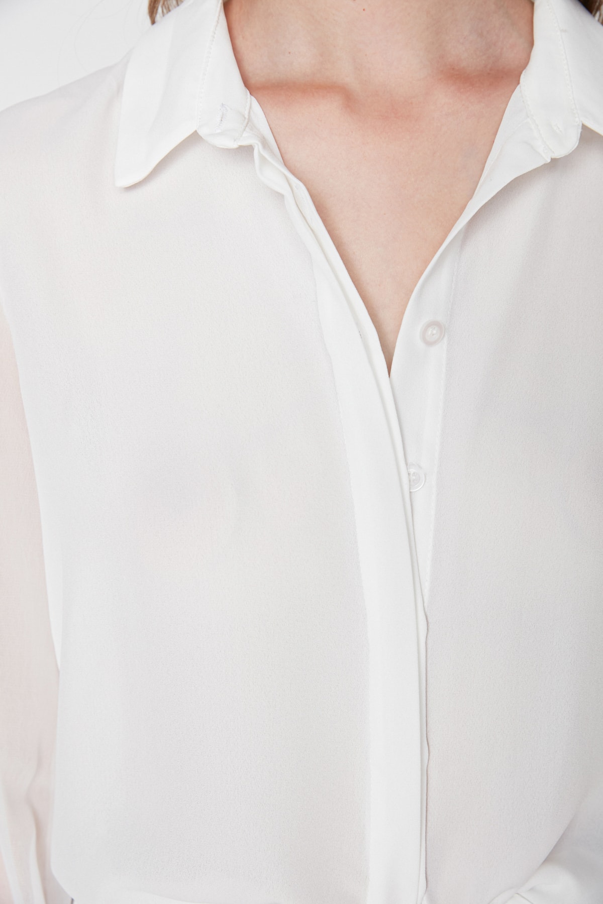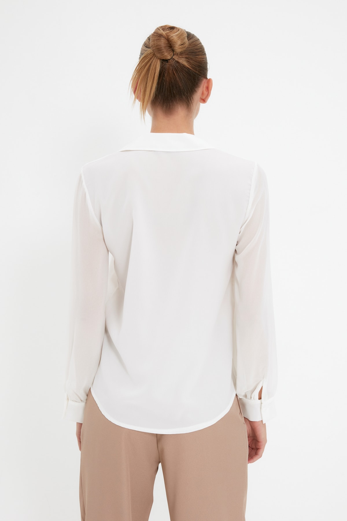 پیراهن زنانه ریگولار فیت سفید با آستین های شفاف TRENDYOLMILLA