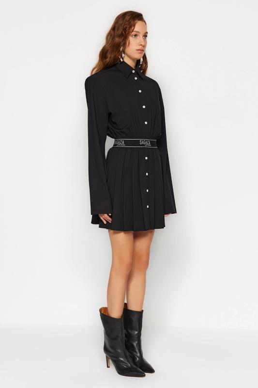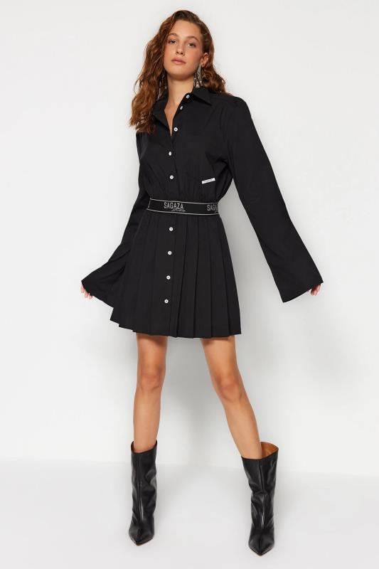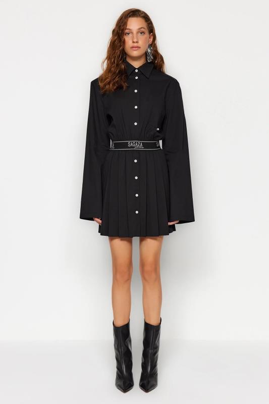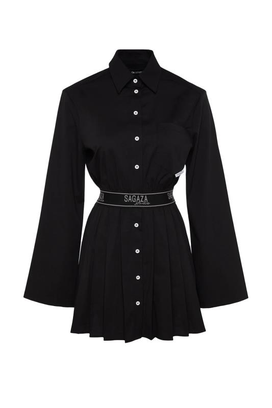 صفحه اصلی\همه پیراهن ها\لباس مجلسی پوپلین پلیسه مشکی X Sagaza Studio با کمر کشی و کمر اسکیت باز مشکی