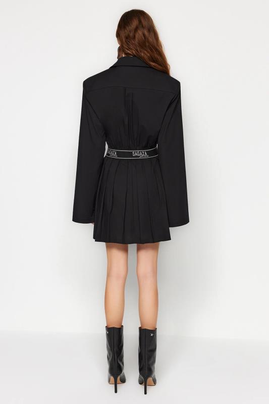 لباس مجلسی پوپلین پلیسه مشکی X Sagaza Studio با کمر کشی و کمر اسکیت باز مشکی