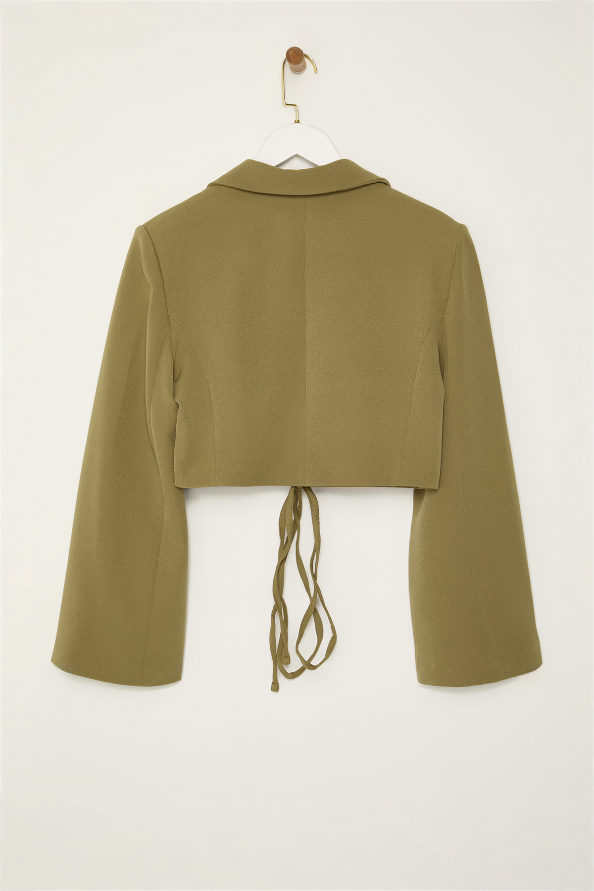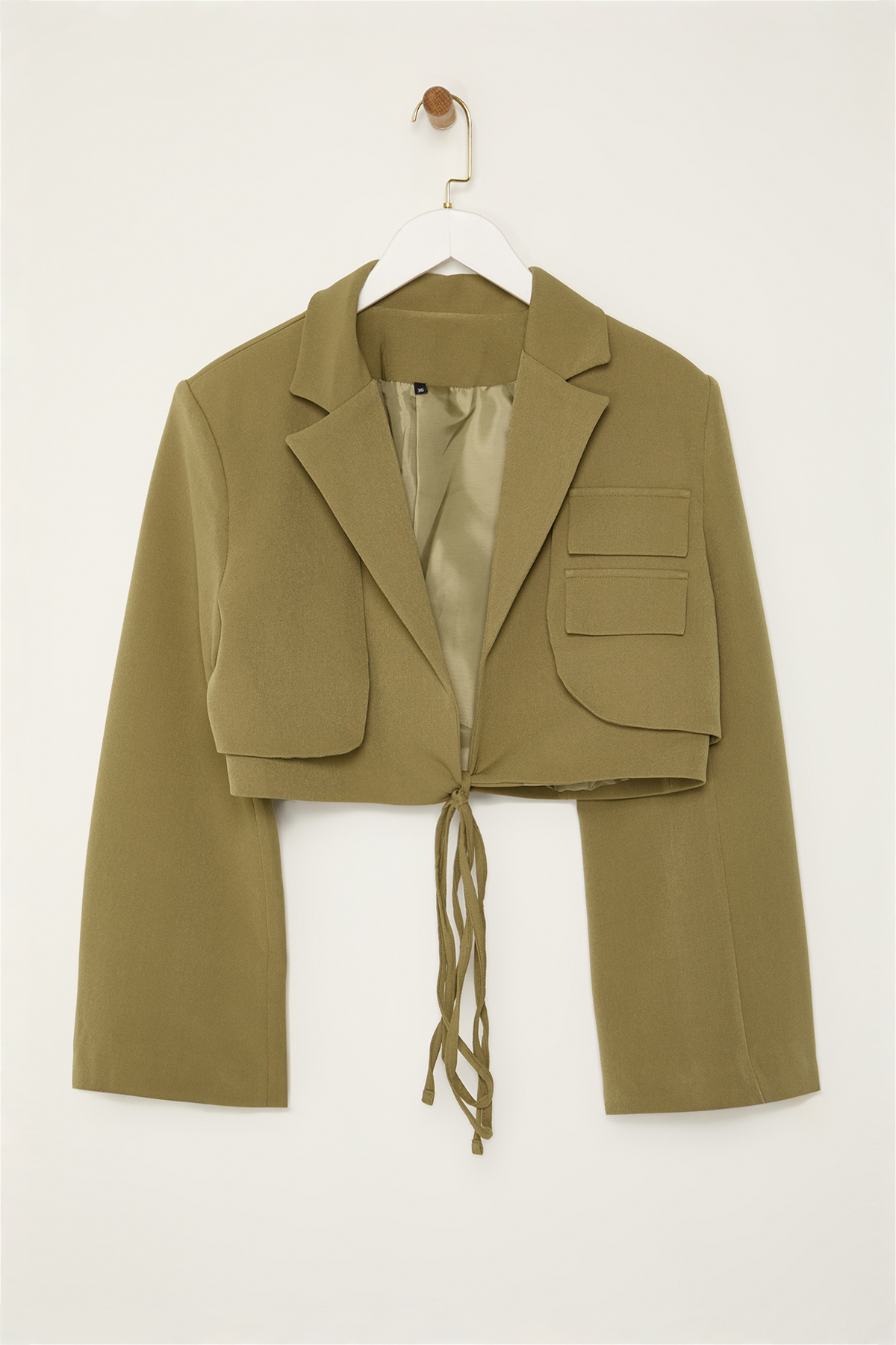 کت زنانه کتانی دو سینه کوتاه خاکی روشن TRENDYOLMILLA