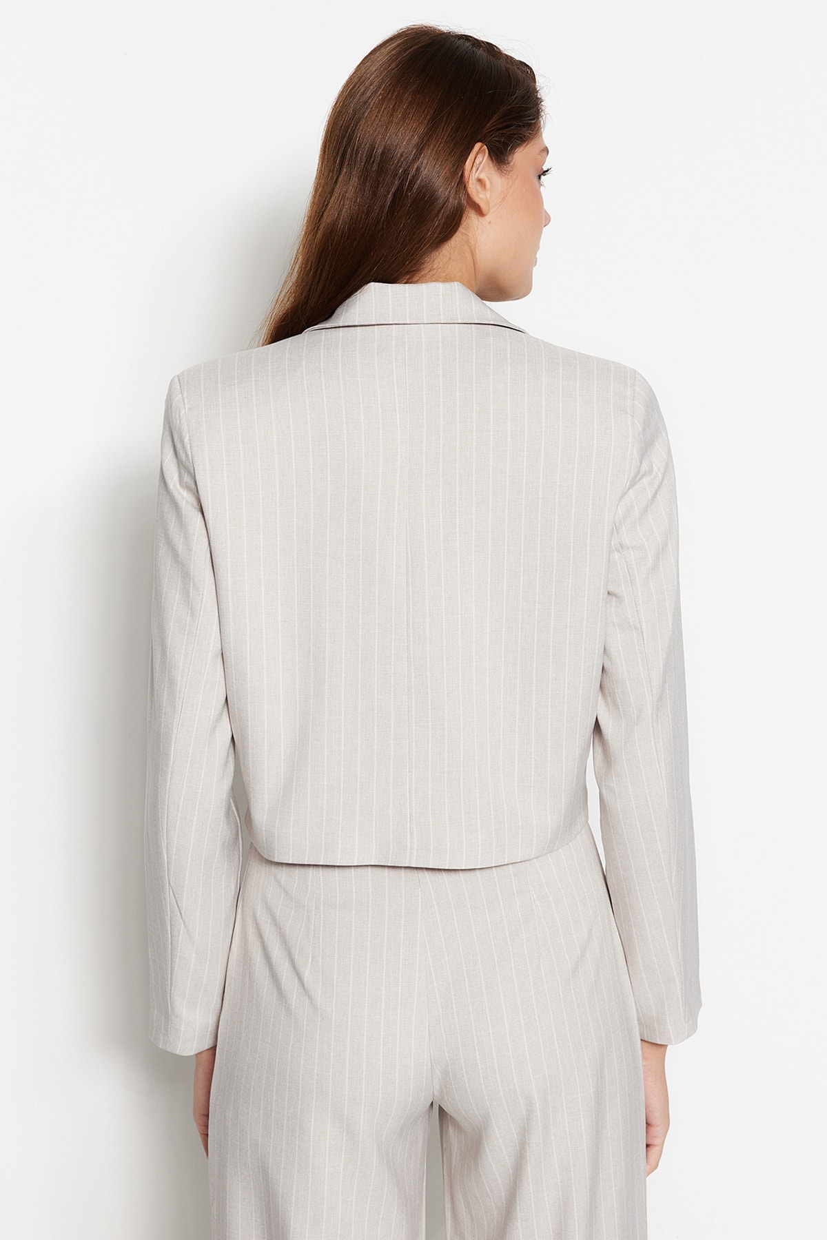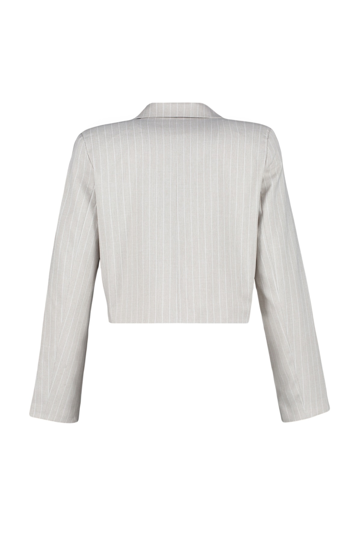 کت زنانه راه راه سنگی ریگولار فیت کوتاه
