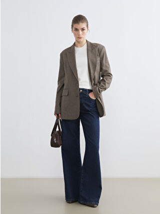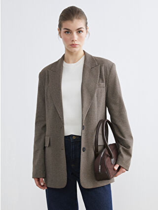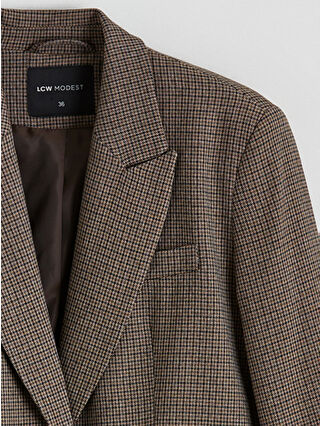 کت بلیزر زنانه طرحدار Houndstooth قهوه ای LCW