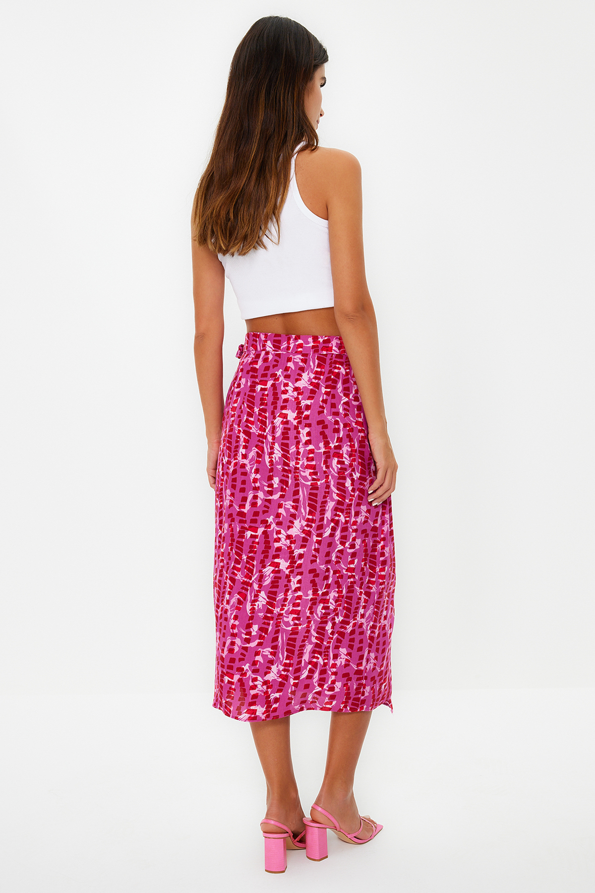 دامن زنانه میدی پارچه ویسکوز طرح بنفش TRENDYOLMILLA
