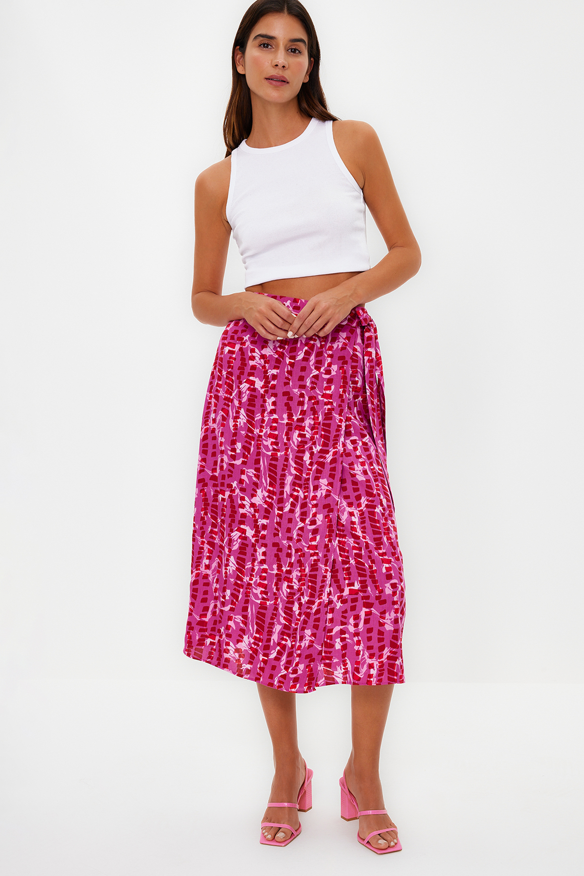 دامن زنانه میدی طرحدار زرشکی Trendyolmilla