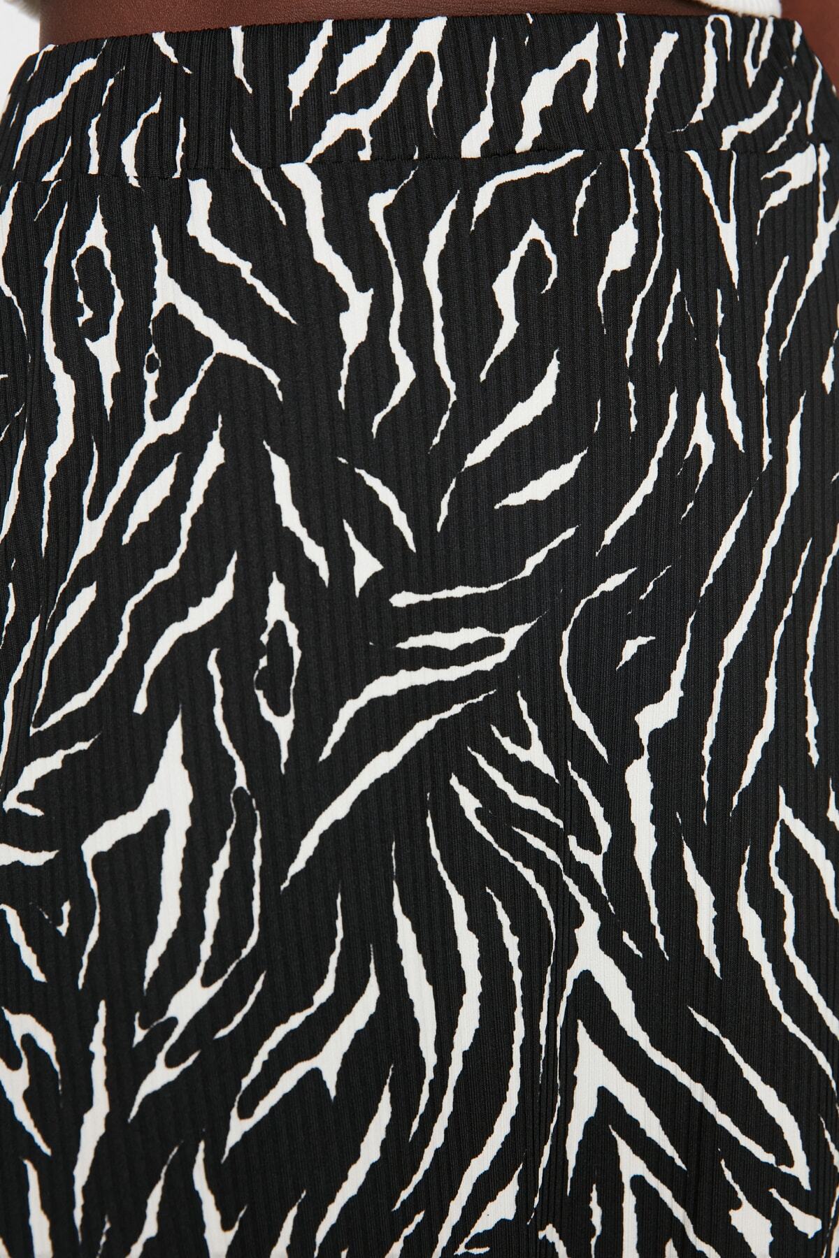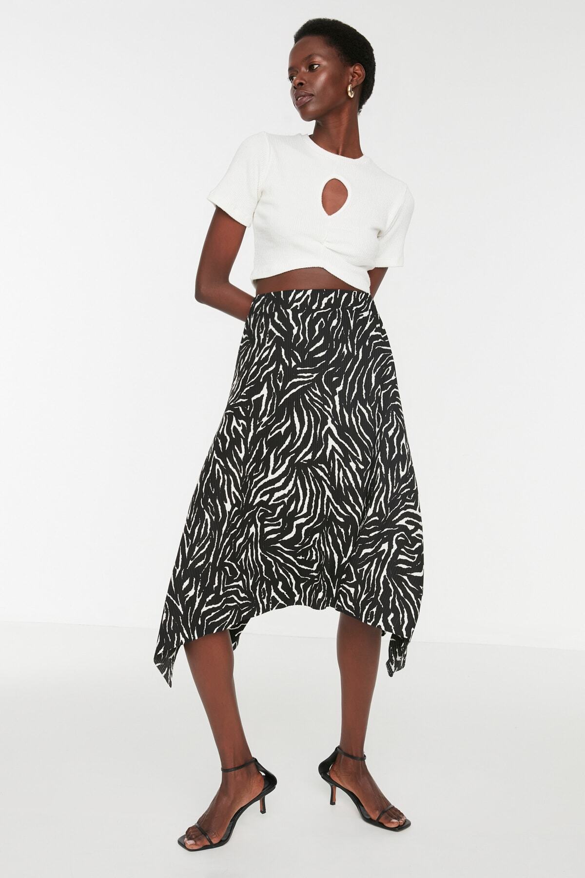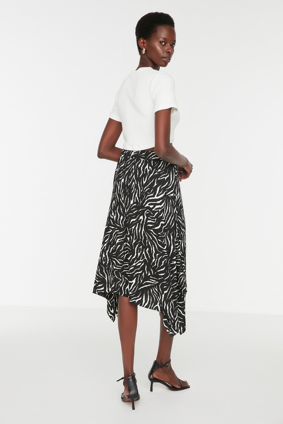 دامن زنانه میدی منعطف نامتقارن با طرح فلونس سفید TRENDYOLMILLA