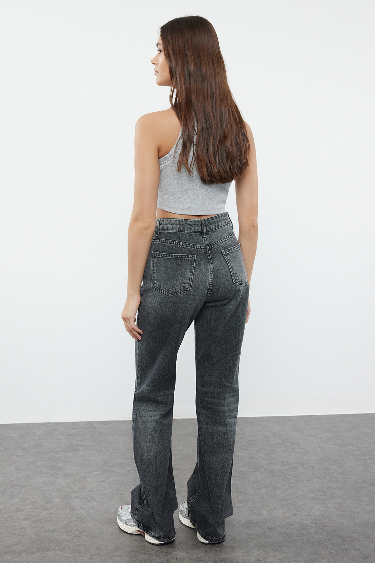 شلوار جین زنانه راسته بسته شدن نامتقارن ذغالی trendyolmilla