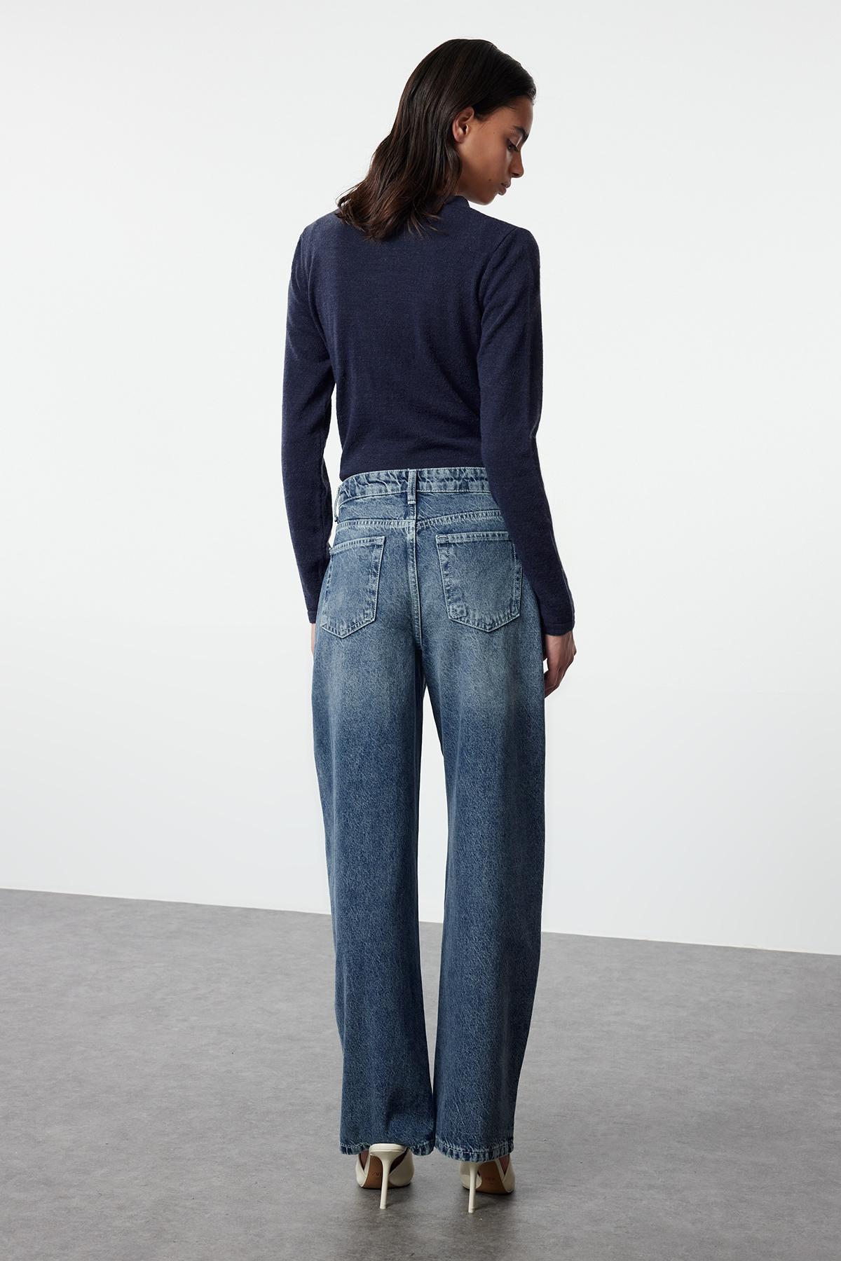 شلوار جین زنانه پاچه گشاد آبی Trendyolmilla