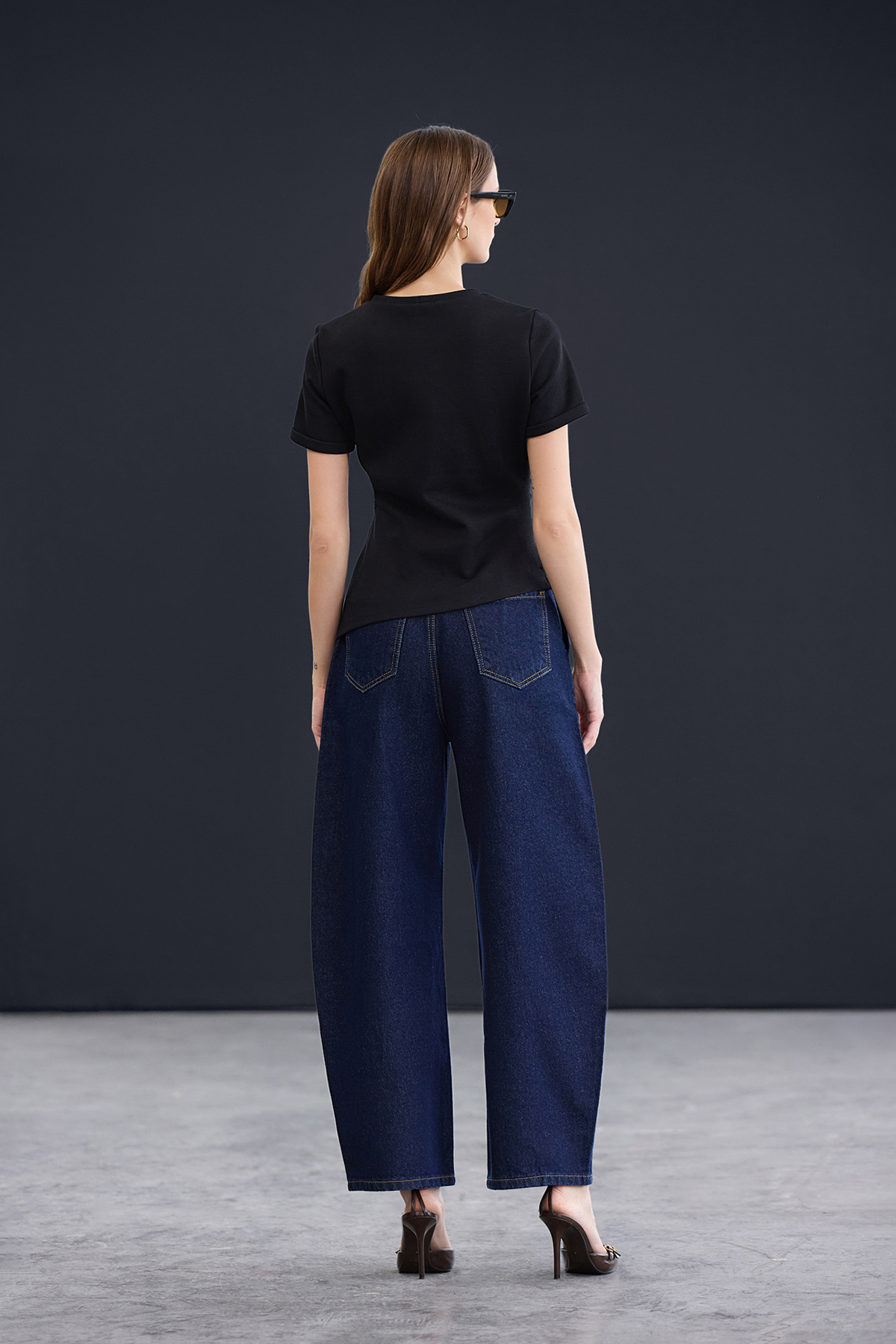 شلوار جین زنانه گشاد فاق بلند آبی تیره Trendyolmilla