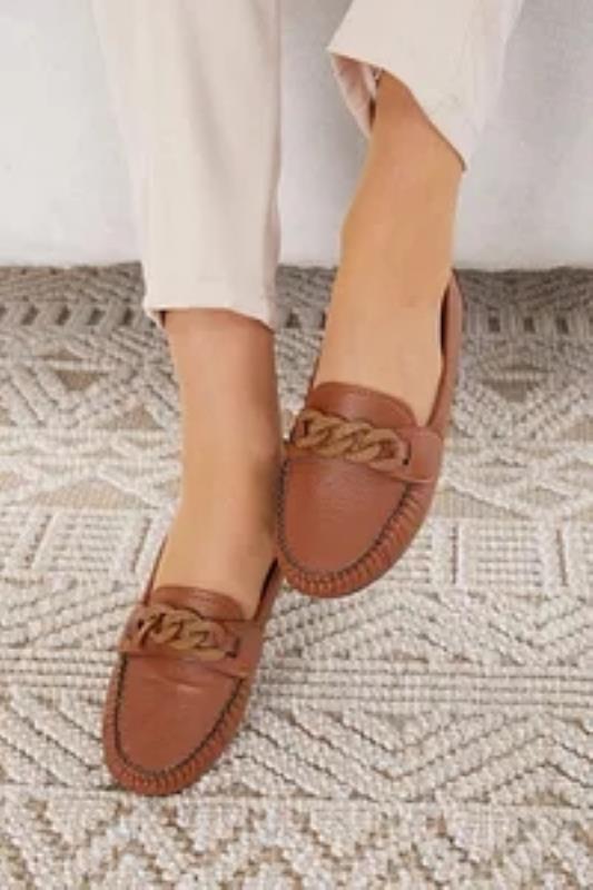صفحه اصلی\همه کفش کالج ها\کفش زنانه بالرین راحت زیره چرم ارتوپدی TOFiSA خرمائی