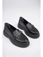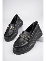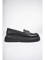 کفشهای راحتی زنانه چرم ورنی طرحدار مشکی با اکسسوری فلزی و بسیار راحت Trendyol Shoes