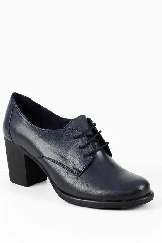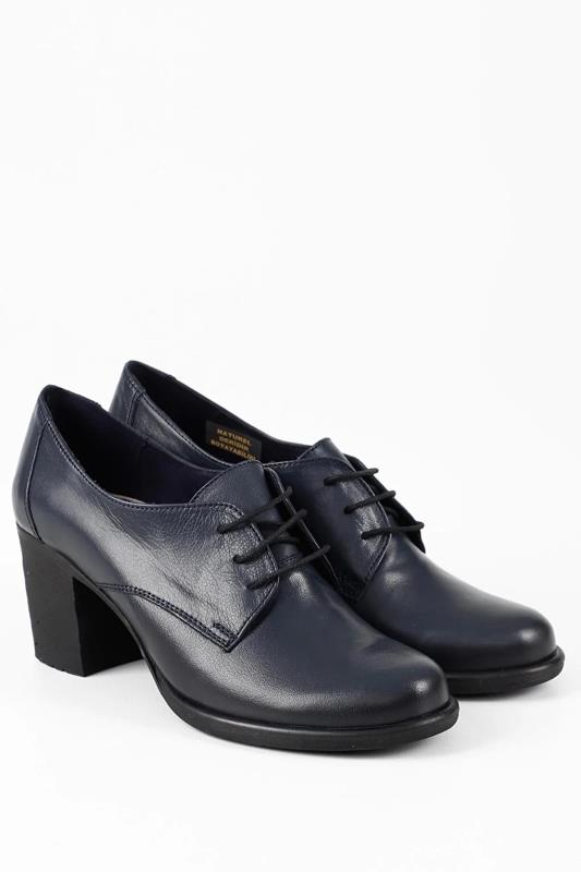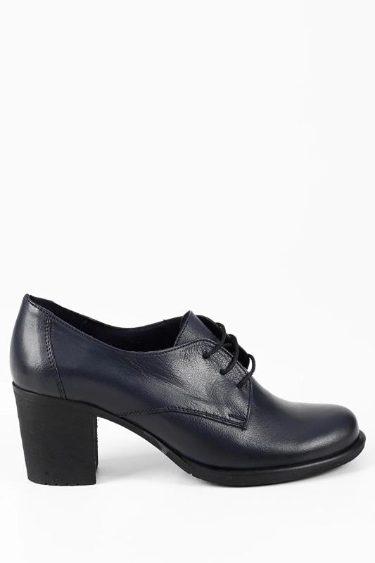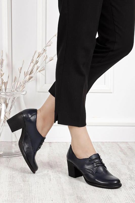 کفش زنانه بند دار پاشنه متوسط پنجه گرد چرم اصل POST(R) سورمه ای