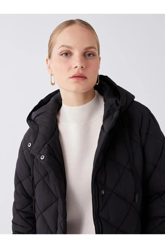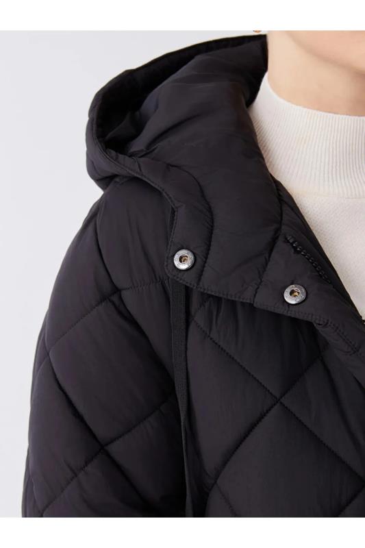 کاپشن پف دار زنانه کلاه دار LC Waikiki مشکی