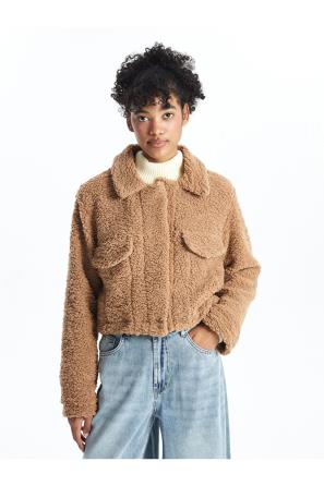 کاپشن زنانه پفی مخمل یقه بلند به رنگ برنزه happiness istanbul