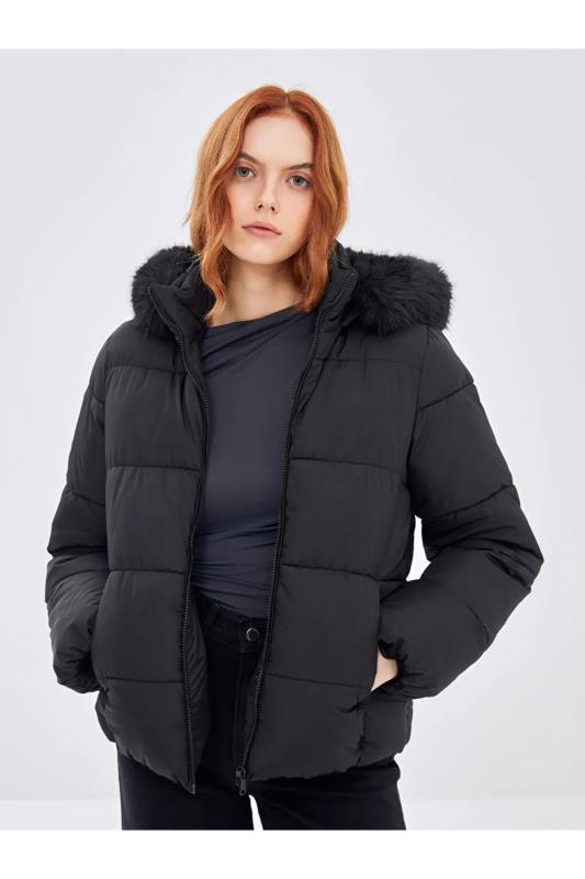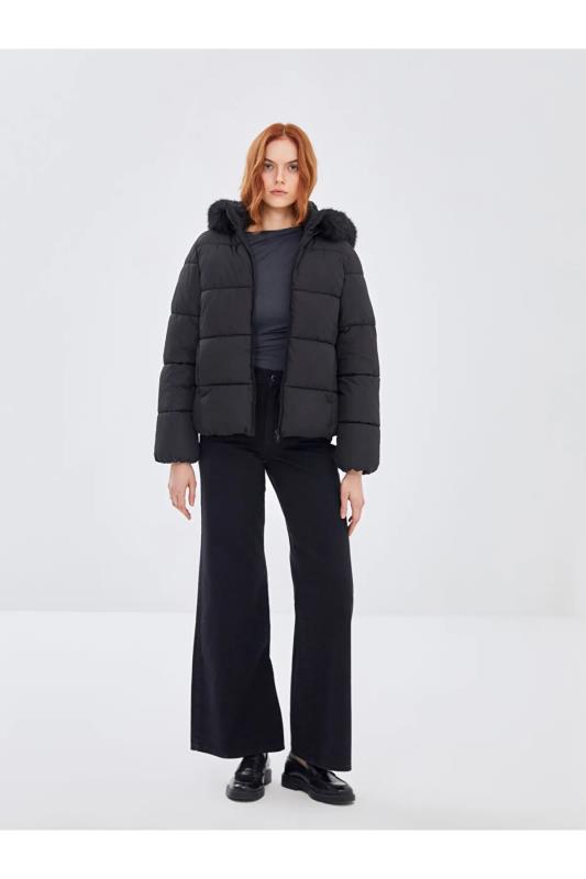 کاپشن پفی ساده کلاهدار LC Waikiki مشکی
