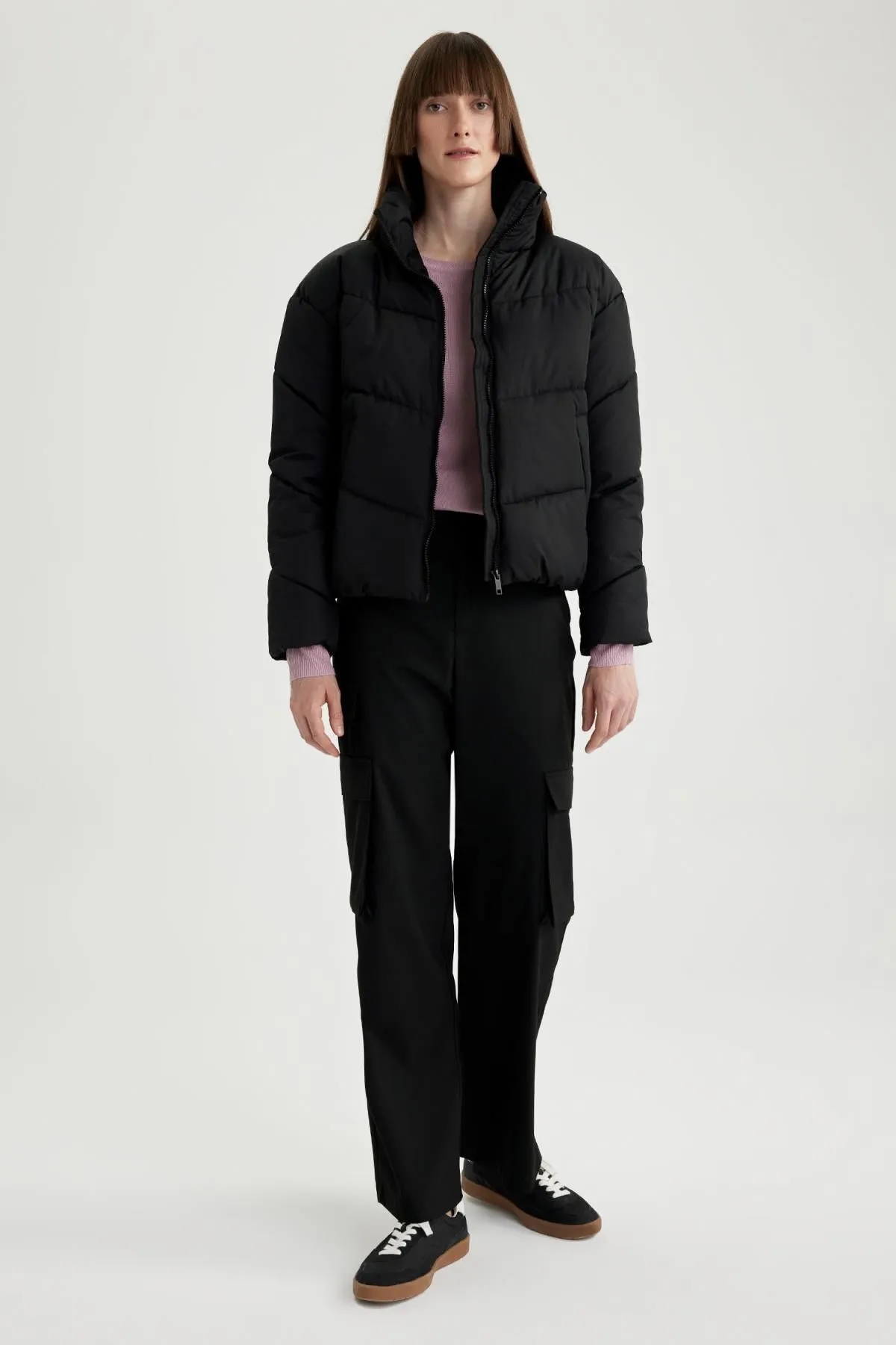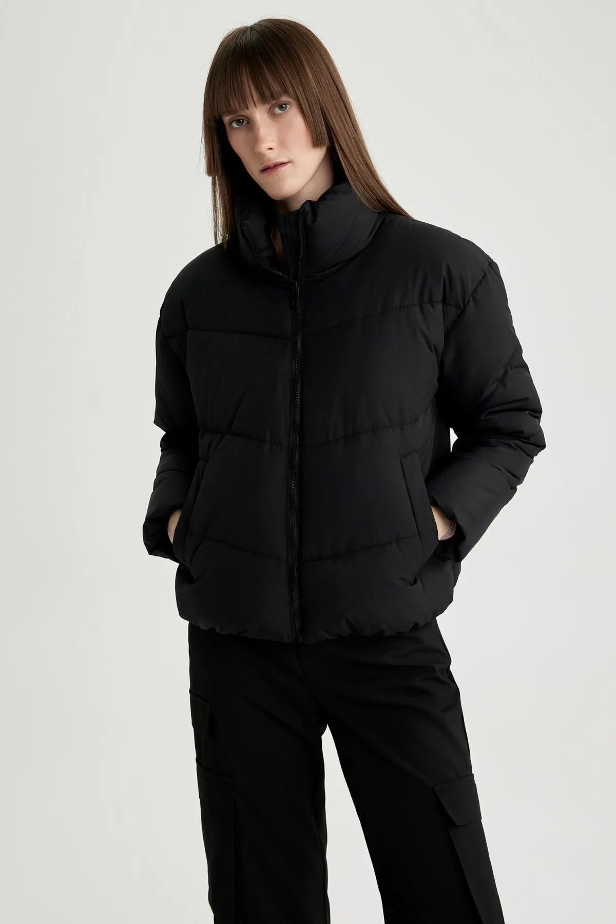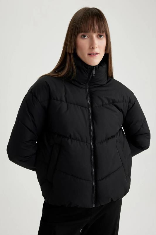 کاپشن پفی یقه ایستاده Relax Fit ضد آب Defacto مشکی