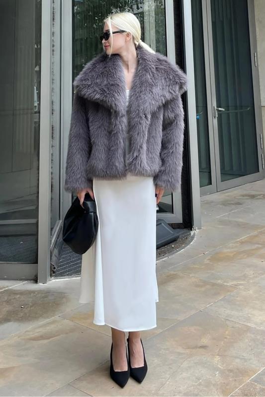 صفحه اصلی\همه کاپشن ها\کت خزدار بافت نرم زنانه MG2204 Madmext ذغالی