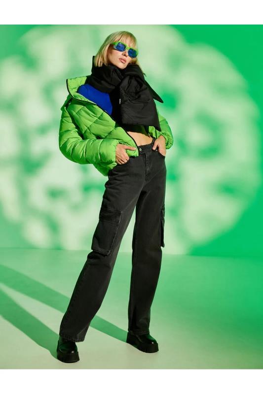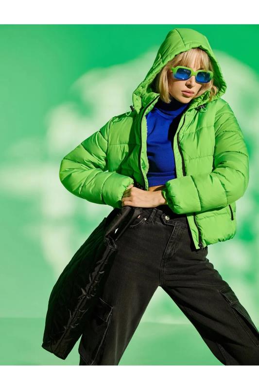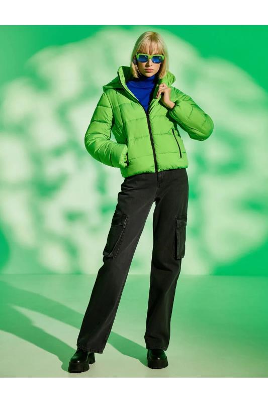 کاپشن پفی کوتاه یقه پایه Koton سبز
