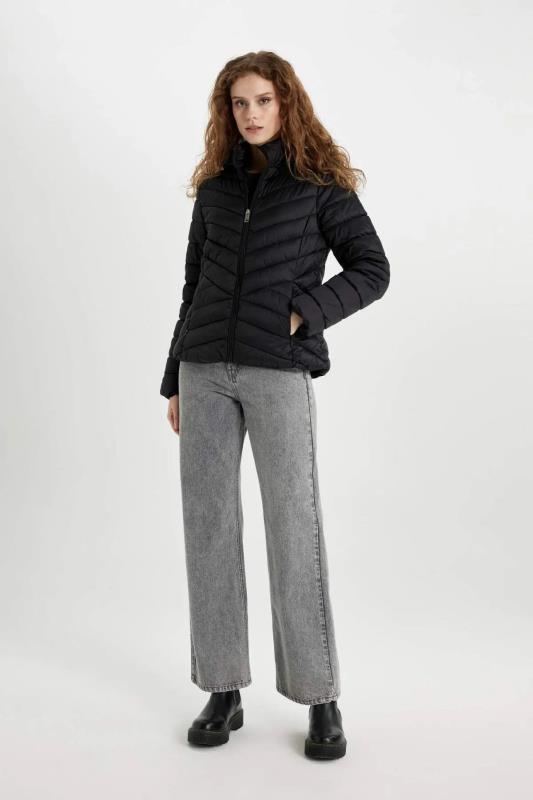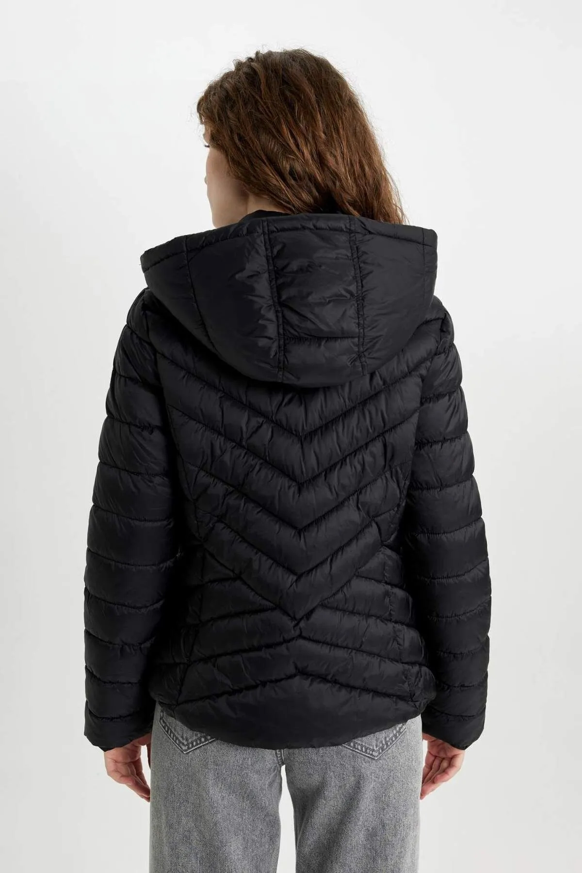 کاپشن پف دار کلاه دار ضد باد معمولی دافع آب Defacto مشکی