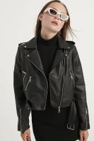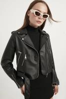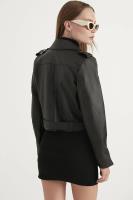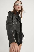 کت زنانه چرم با جزئیات زیپ کوتاه مشکی meecy مشکی